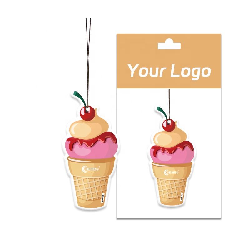 Vente en gros papier odeur carte suspendu parfum de voiture de luxe longue durée personnalisé crème glacée forme papier désodorisant