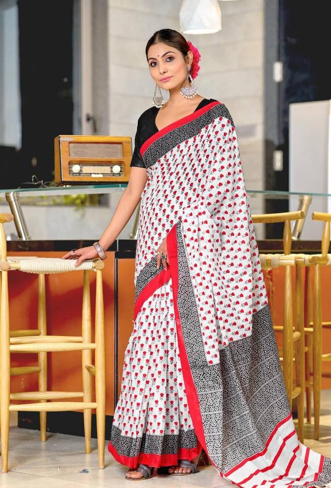 Saree:All Over Natural Dye Flower With Block Print (5.50 Mtr Approx)