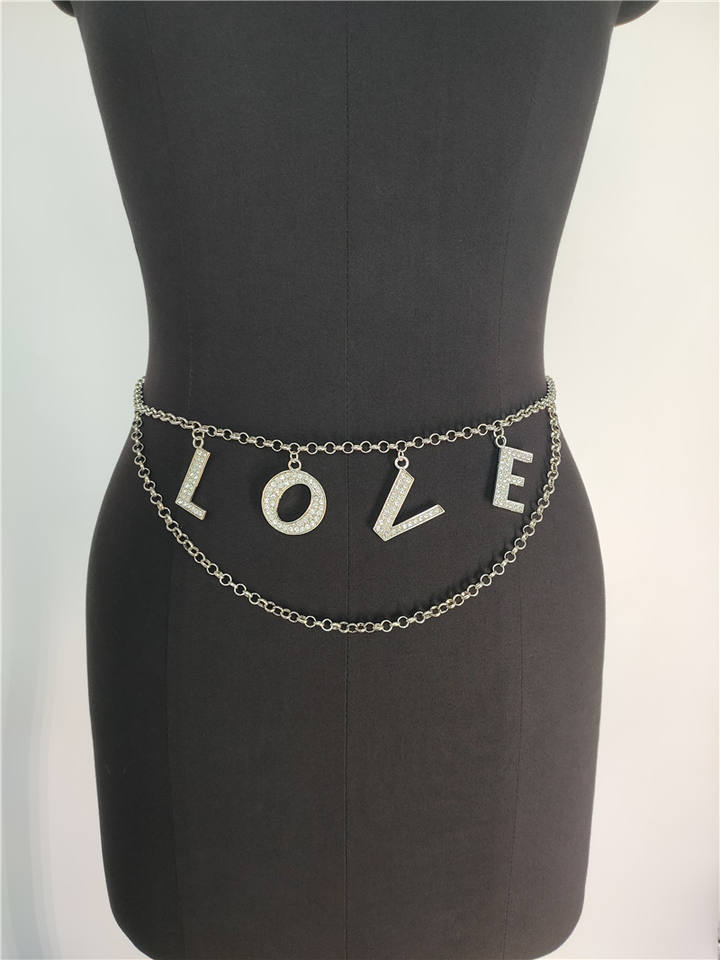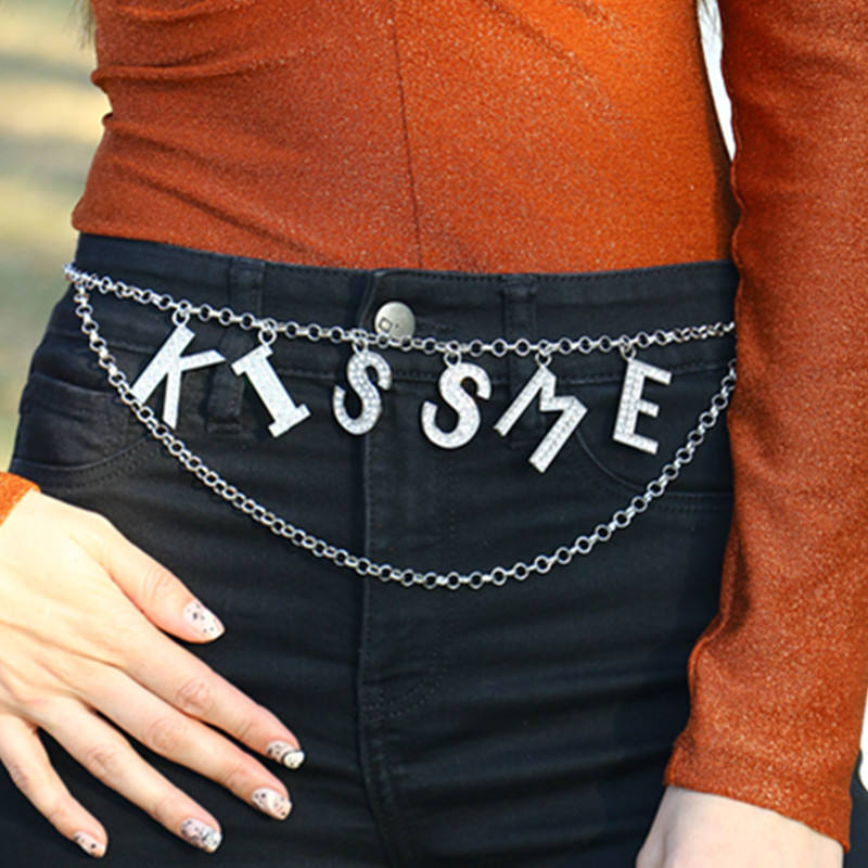 Vente en gros de chaîne de personnalité personnalisée avec breloques en forme de lettre initiale en argent avec strass en cristal de diamant chaîne de danse pour femmes