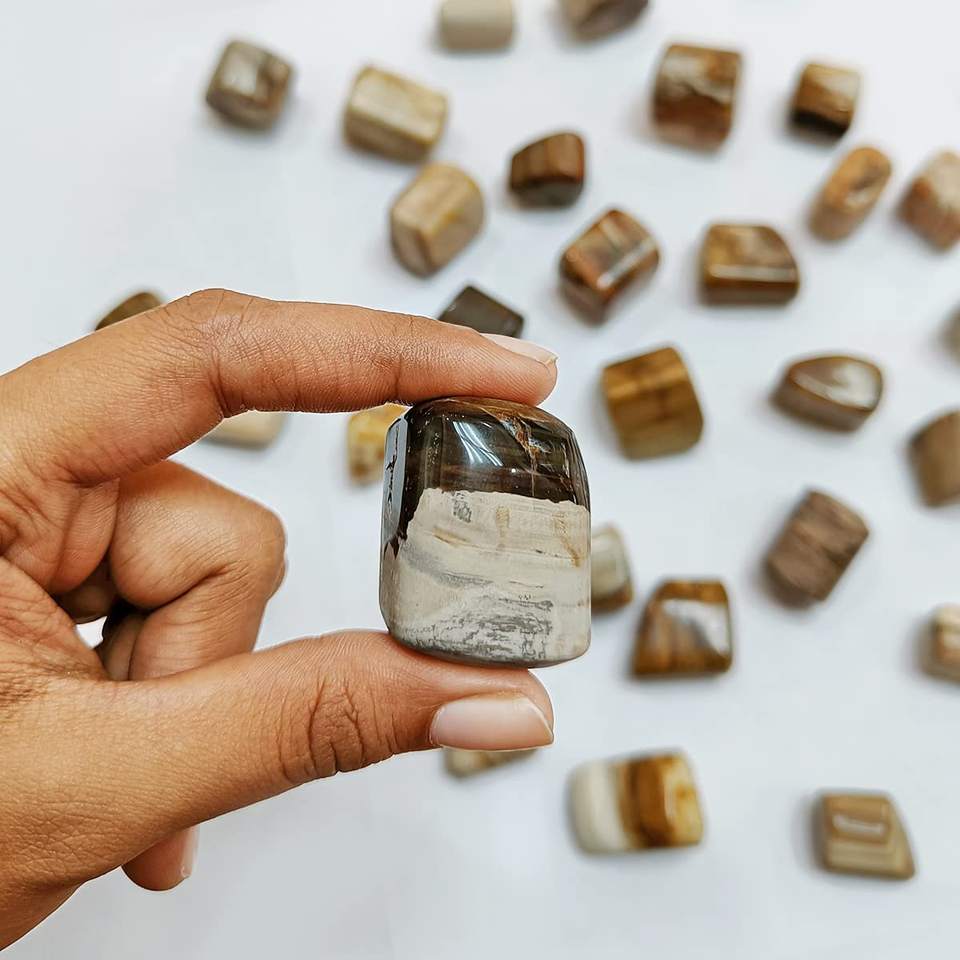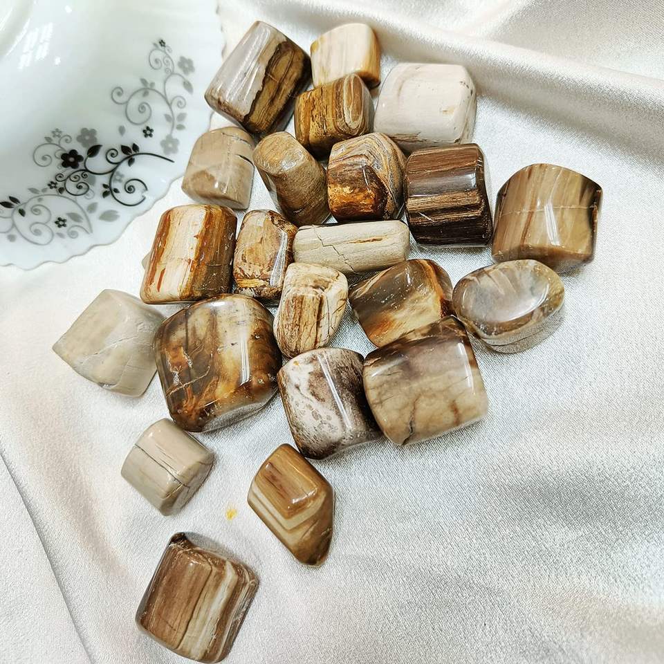 Wholesale Petrified Wood Polished Crystal Tumbled Stones - Reiki & Chakra Balancing - Bulk Petrified Wood Crystal Tumble