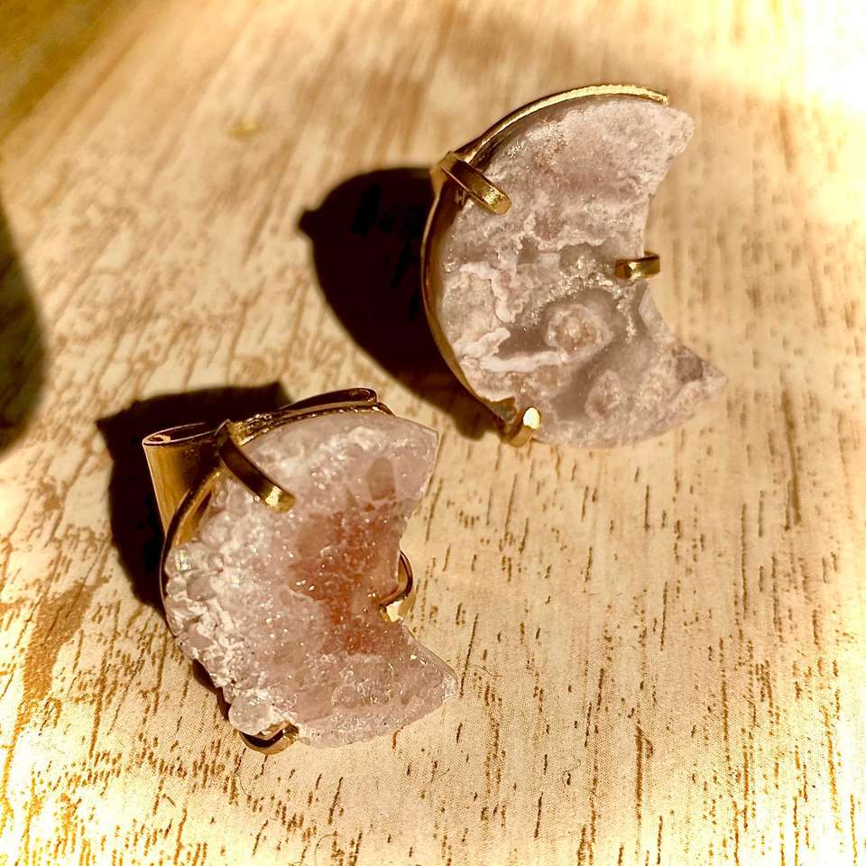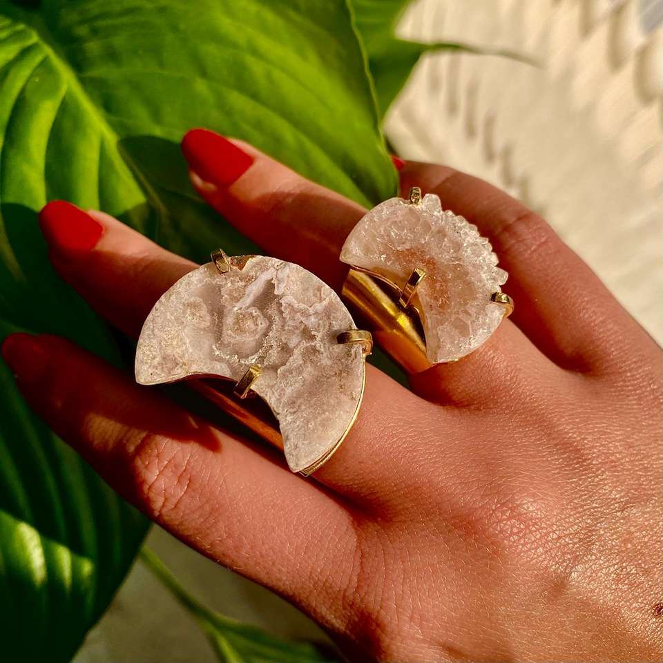 Vente en gros Bagues manchette en améthyste rose avec placage en or jaune en forme de lune