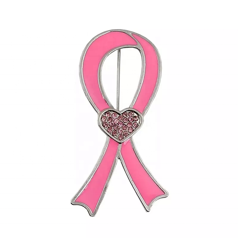 Ruban en émail rose en gros avec strass coeur broche broche bijoux mode sensibilisation au cancer du sein octobre