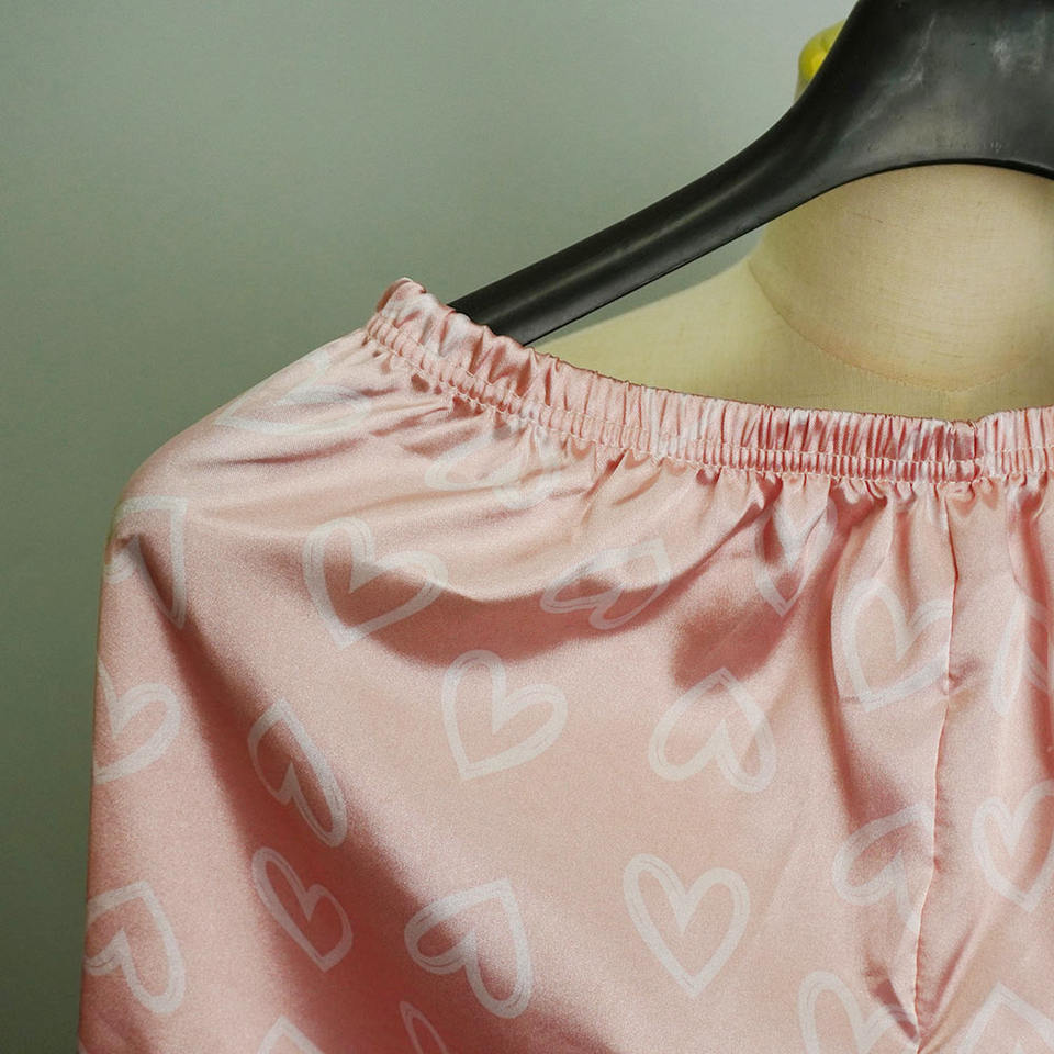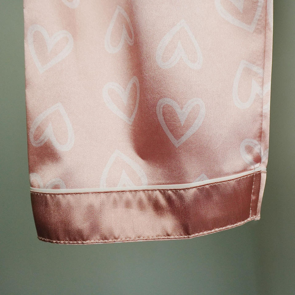 Ensemble de vêtements de nuit pour dames à boutons en polyester rose vente en gros ensembles de pyjamas pour femmes chemises de nuit à imprimé cœurs