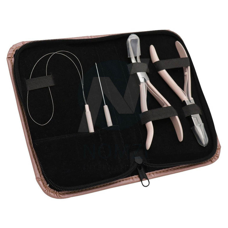 Kit de pinces à cheveux en acier inoxydable rose en gros outil de crochet de traction d'extension de cheveux