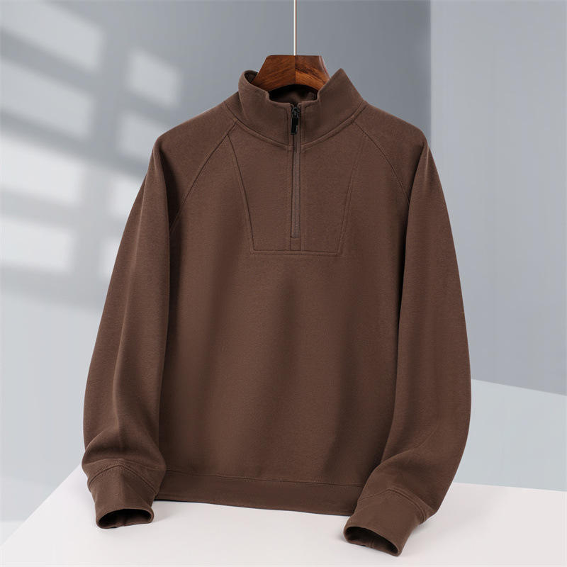 Vente en gros Sweat-shirt uni à col roulé de haute qualité en polyester et coton vintage surdimensionné personnalisé à demi-fermeture éclair pour hommes
