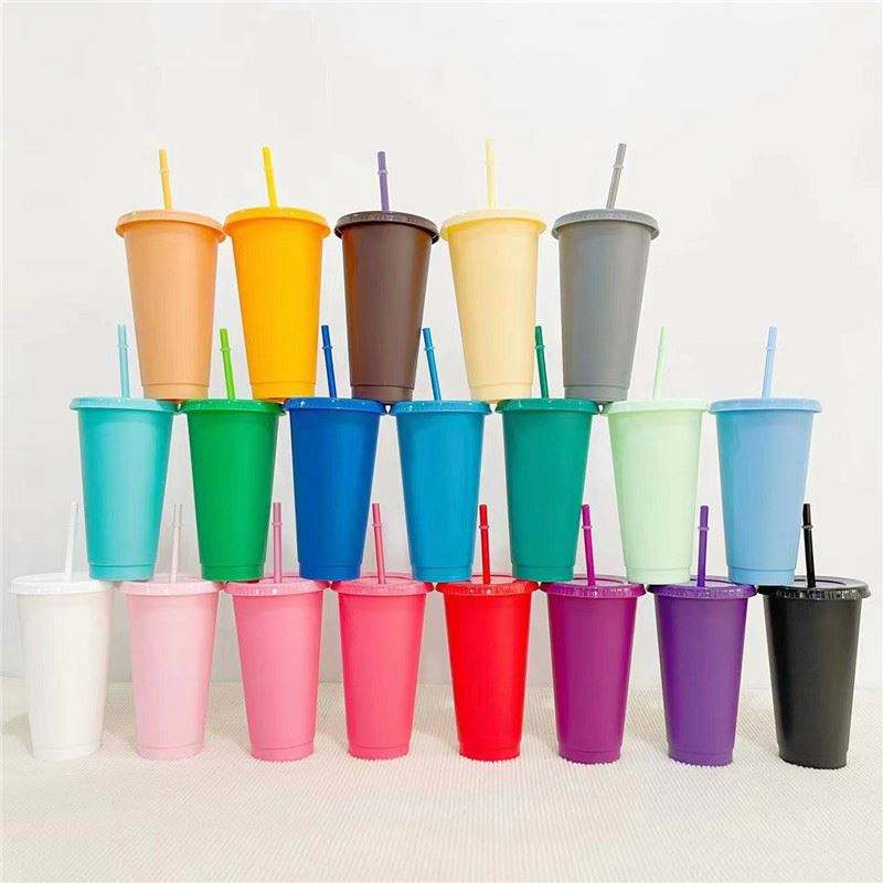 Wholesale Plastic Frosted Summer Glitter Straw Cup Mini Compact Portable Leak-Proof Party Use 8oz-32oz Capacity with for