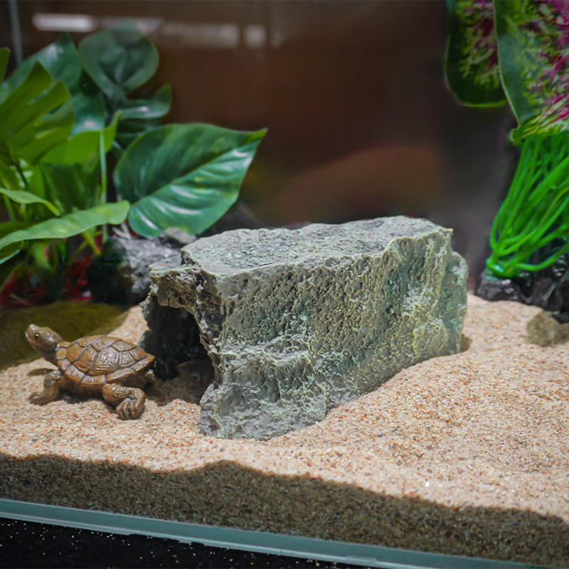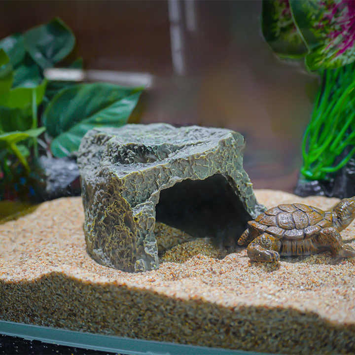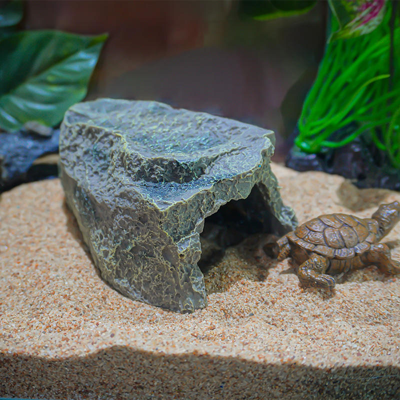 Vente en gros d'accessoires en plastique pour reptiles et résine, abri pour lézards, dragons barbus, tortue des cavernes
