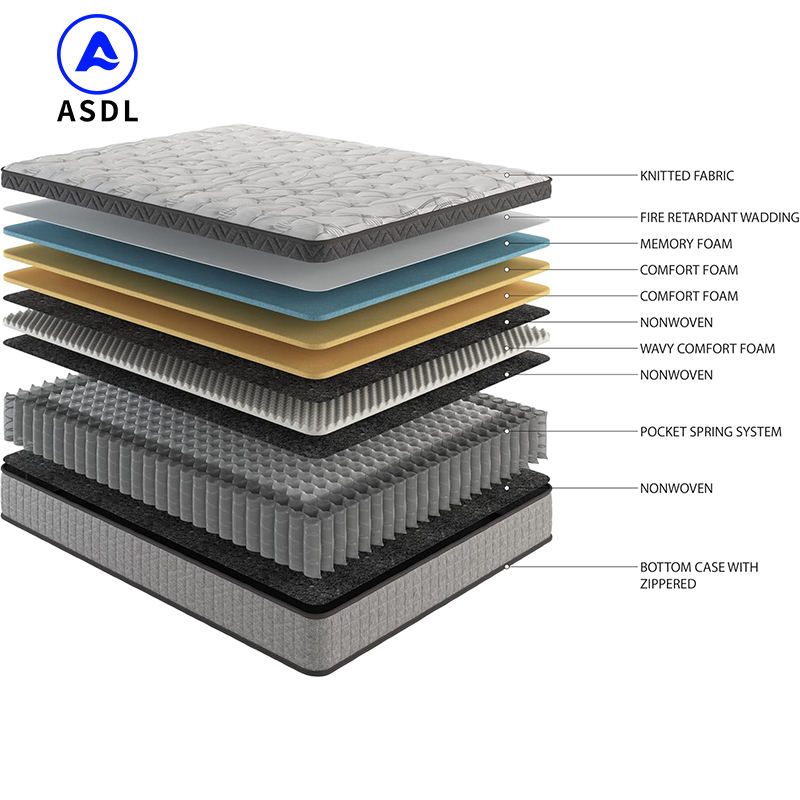 Matelas de lit en latex naturel à ressorts ensachés en gros, tissu tricoté doux, matelas en mousse à mémoire de forme pour chambre d'hôtel 5 étoiles