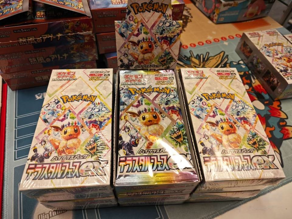 Vente en gros de cartes PokeMoned version japonaise SV8a, pack booster japonais Eevee, boîte en papier originale, carte Eevee dorée PTCG, 151