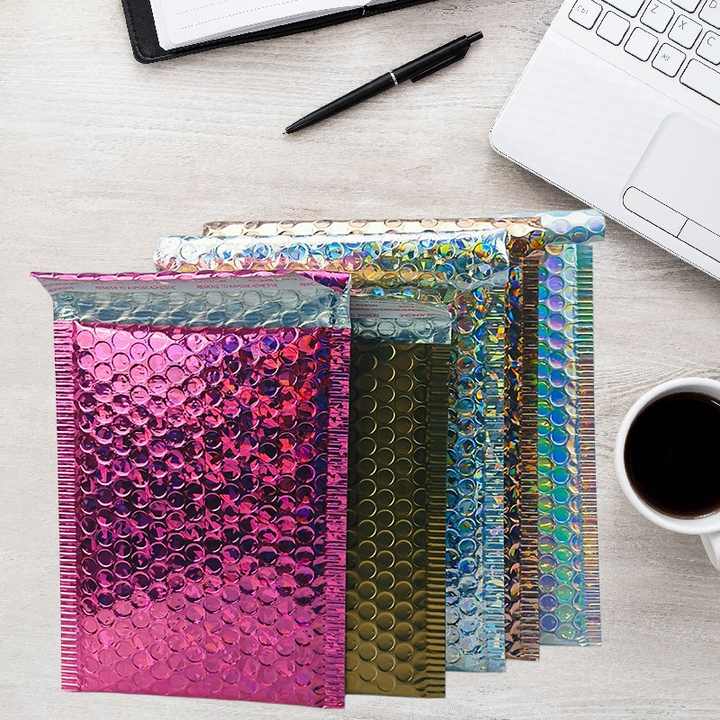 En gros, Sacs d'expédition logistique imperméables en polybulle colorés, holographiques et pour emballage de vêtements