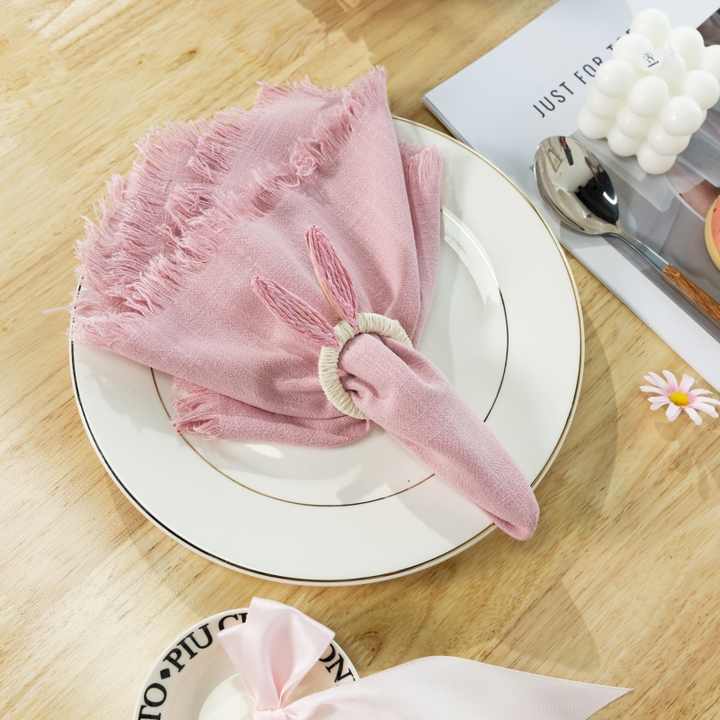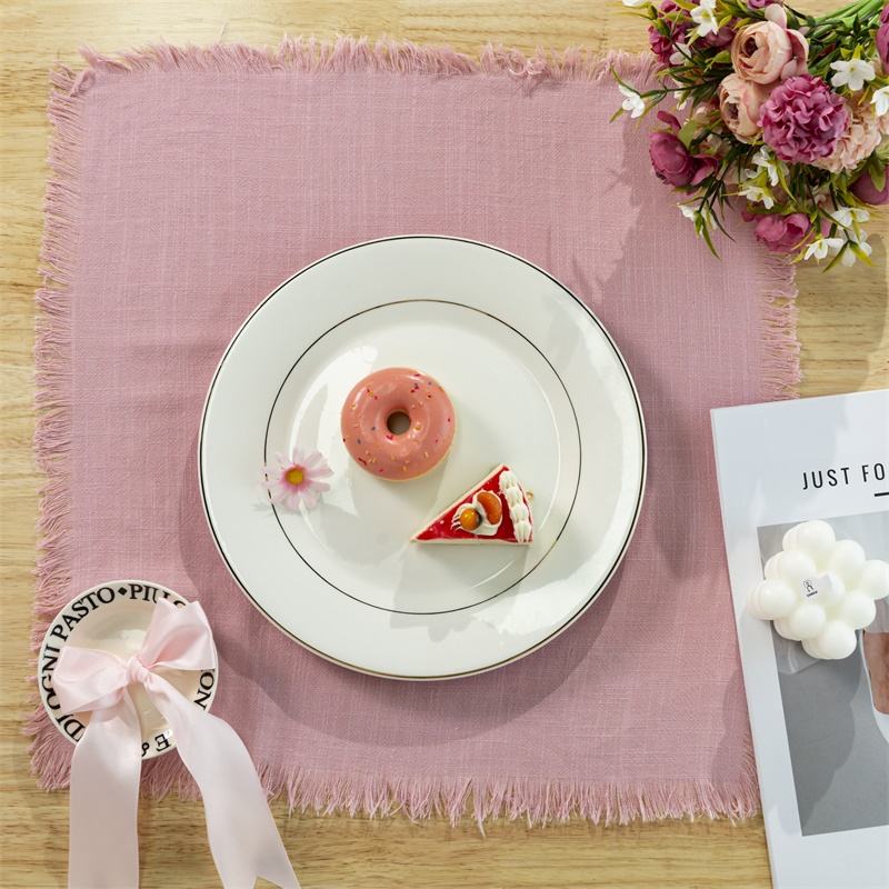 Vente en gros Serviette de table carrée moderne en polyester avec motif floral Étamine de gaze de coton à bord brut pour les parties de thé de jardin anglais