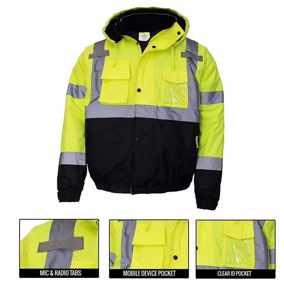 Veste et pantalon de travail en polyester Oxford, réfléchissants, certifiés CE, imperméables, haute visibilité, multi-poches, pour le froid, vente en gros