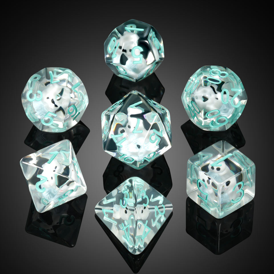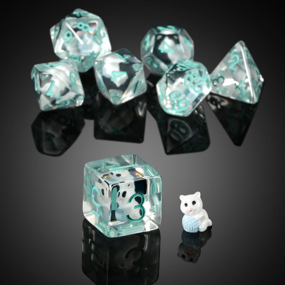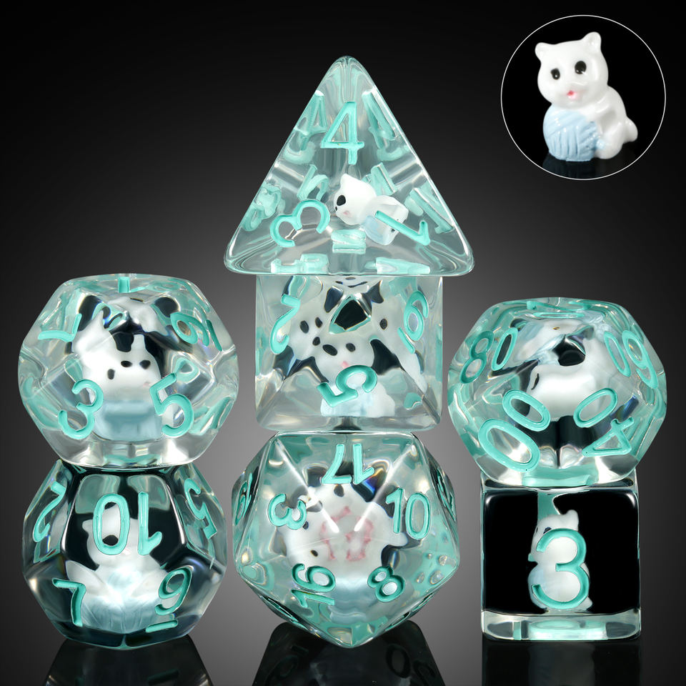 Lot de dés polyédriques en résine pour D&D, avec design animalier personnalisé (y compris chat), tailles carrée et 16 mm, pour jeux de rôle D&D