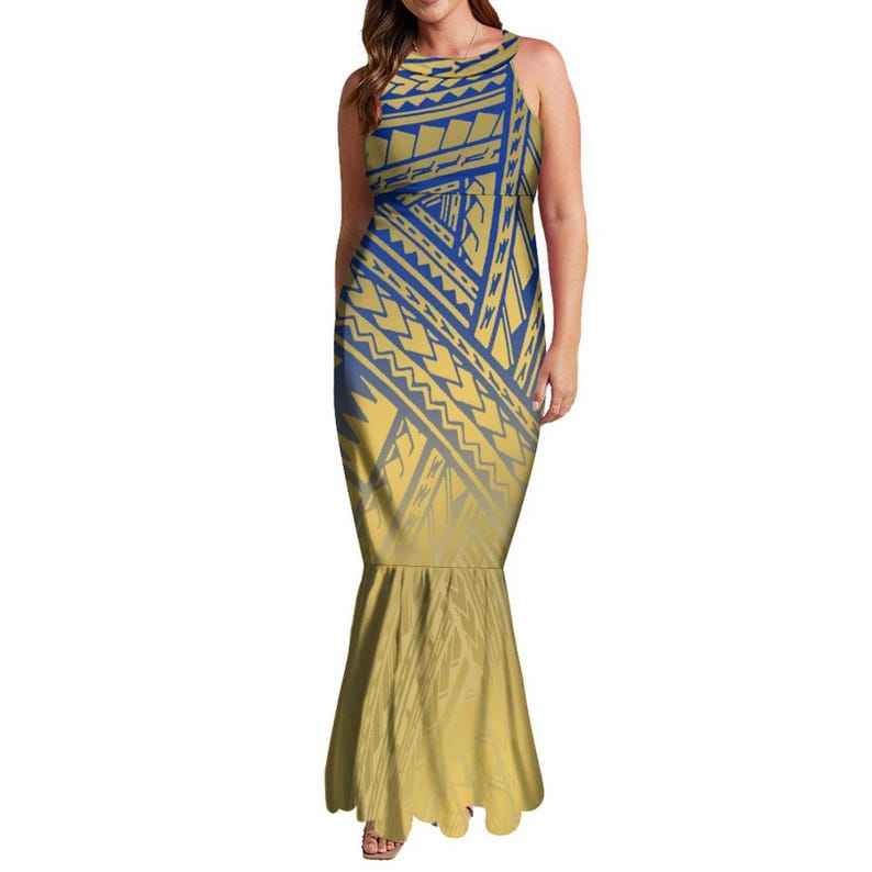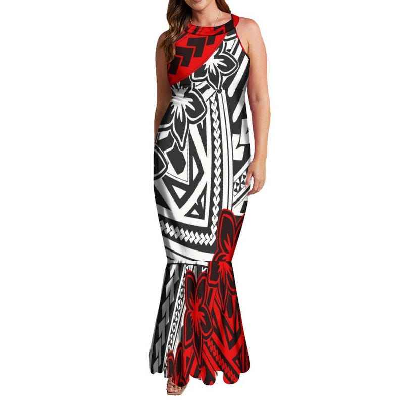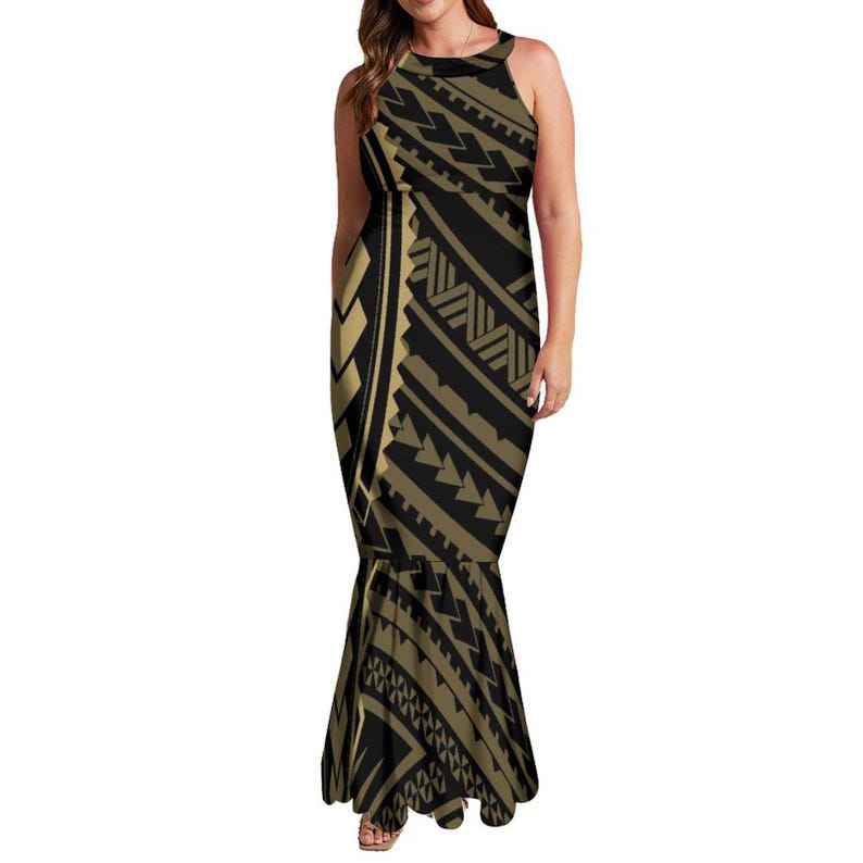 Wholesale Polynesian Island Print Mermaid Dress Custom Halter Sleeveless Elegant Maxi Dress Women Long Prom Dress
