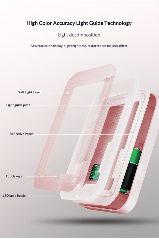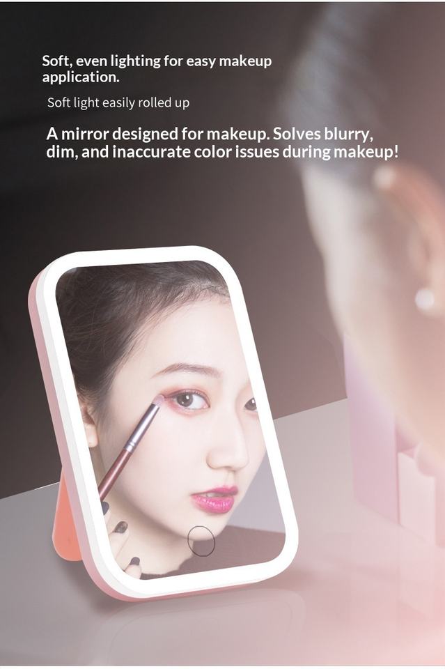 Table de Maquillage Portable de Bureau en Gros avec Lumière, Miroir LED à Trois Couleurs à Intensité Variable - Compact et Pratique, Petite Taille