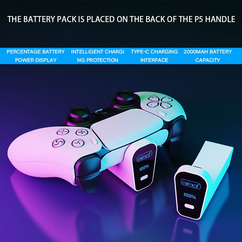 Wholesale Portable Game Controller Back Clip Led Digital Display 2000Mah Lithium Battery Pack for Ps5