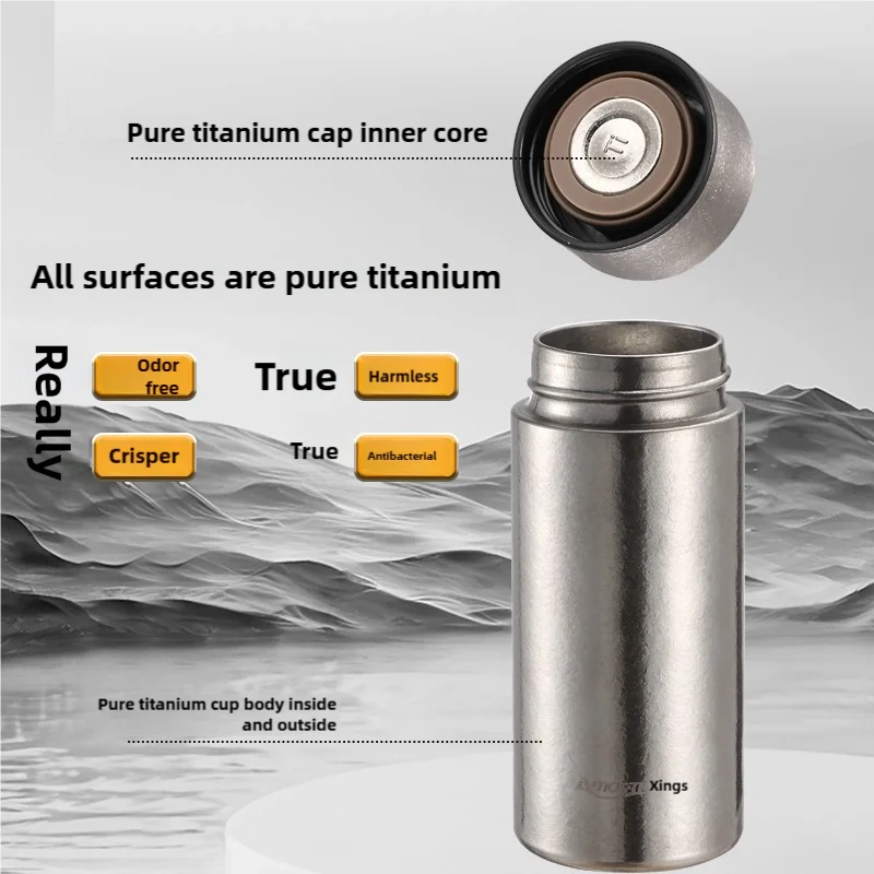 Vente en gros de mini thermos portable en titane pur de style unisexe capacité de 200ml avec motif de ventouse couvercle de bouteille de fiole à vide unisexe