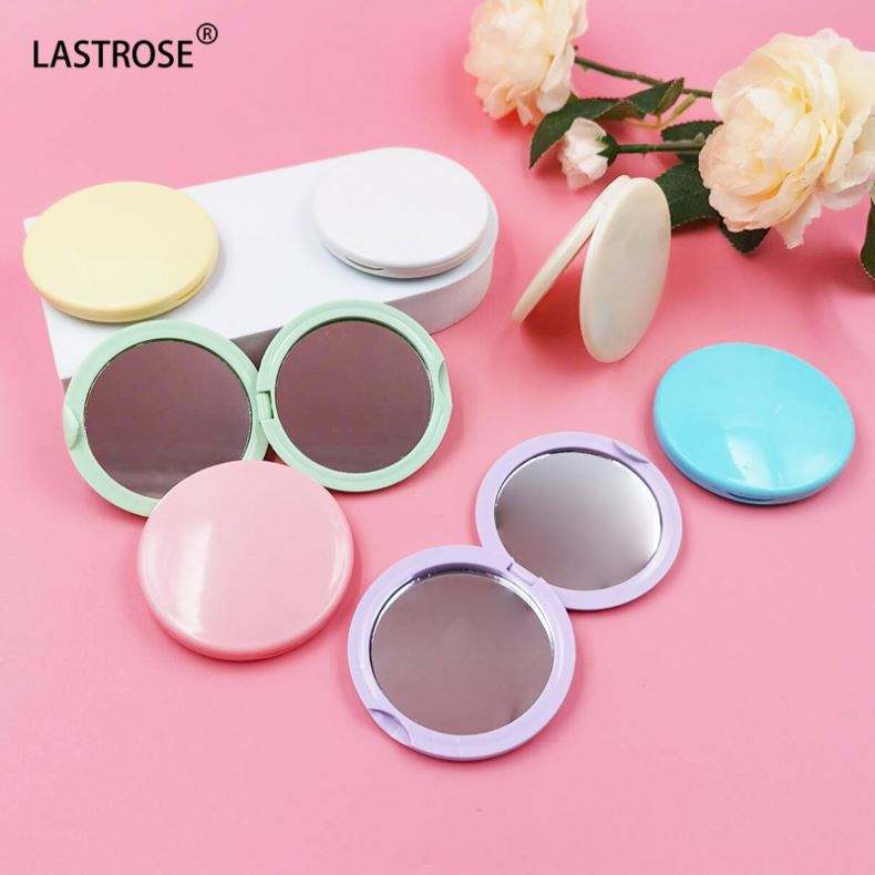 Miroirs de poche pliables ronds portables en gros, mini miroirs de maquillage cosmétiques double face en plastique pour filles