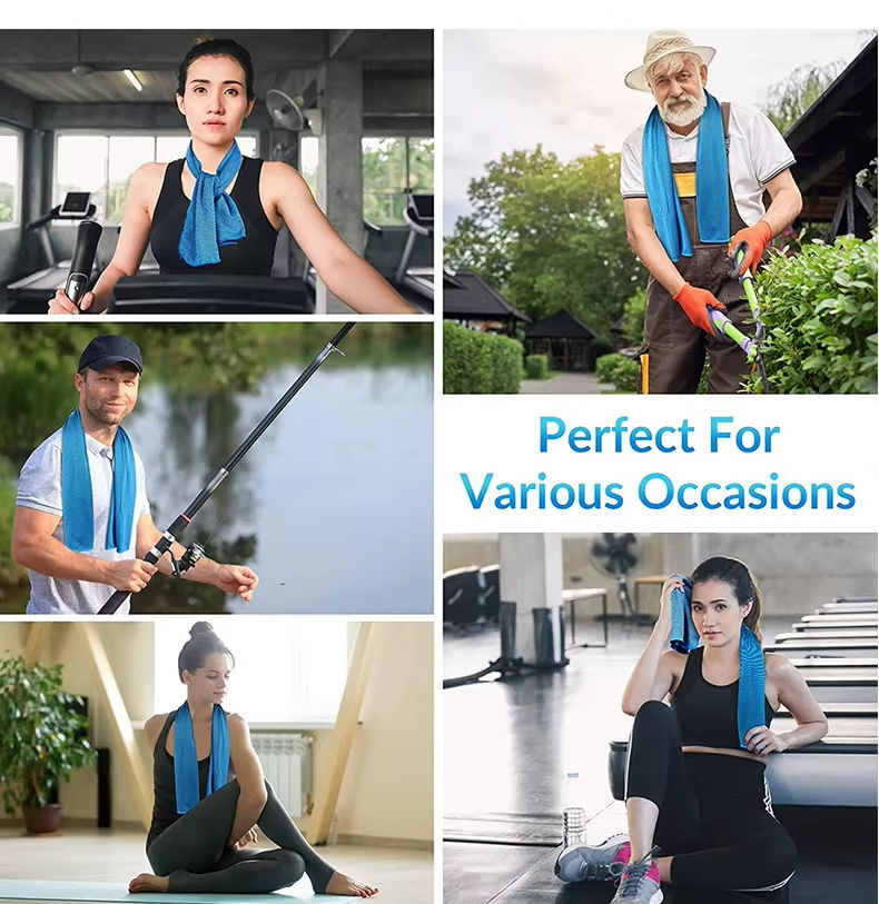 Serviette rafraîchissante portable en silicone, polyester, pour activités de plein air, fitness, sport, gym, course à pied, séchage rapide – Vente en gros