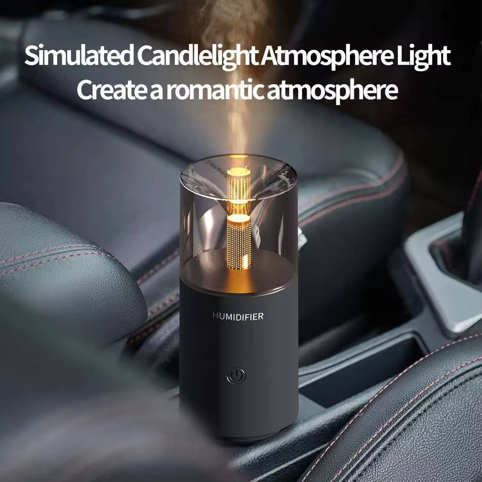 Diffuseur d'huile aromatique USB portable en gros humidificateur de bureau mini à led diffuseur d'humidificateur à ultrasons avec lumière de bougie pour voiture