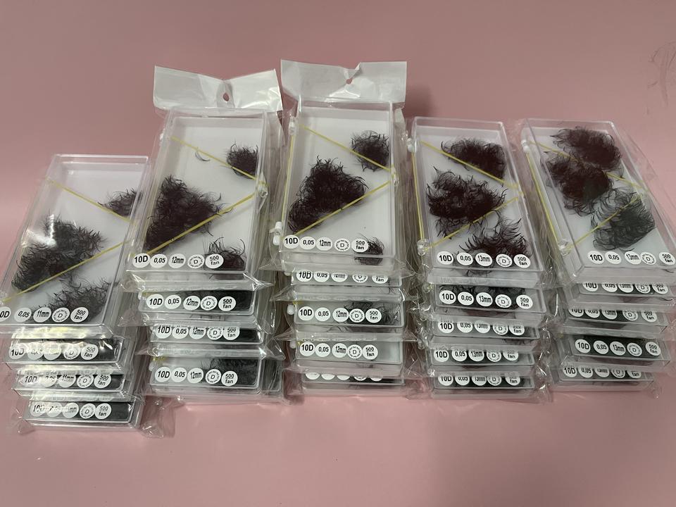 Extensions de cils synthétiques faites à la main en gros, pré-faites, 10D-20D, volume méga, cils fins, mats, foncés, personnalisables