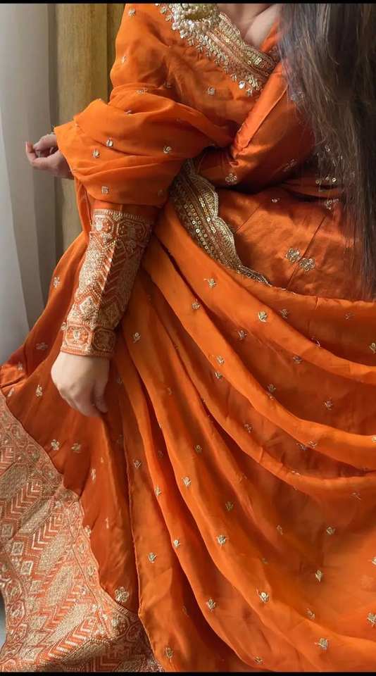 Vente en gros Premium lourd brodé Designer Orange soie Lehenga Choli ensemble avec Dupatta pour les femmes de fête de mariage et de fête