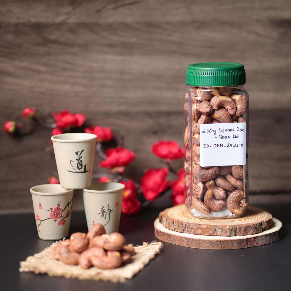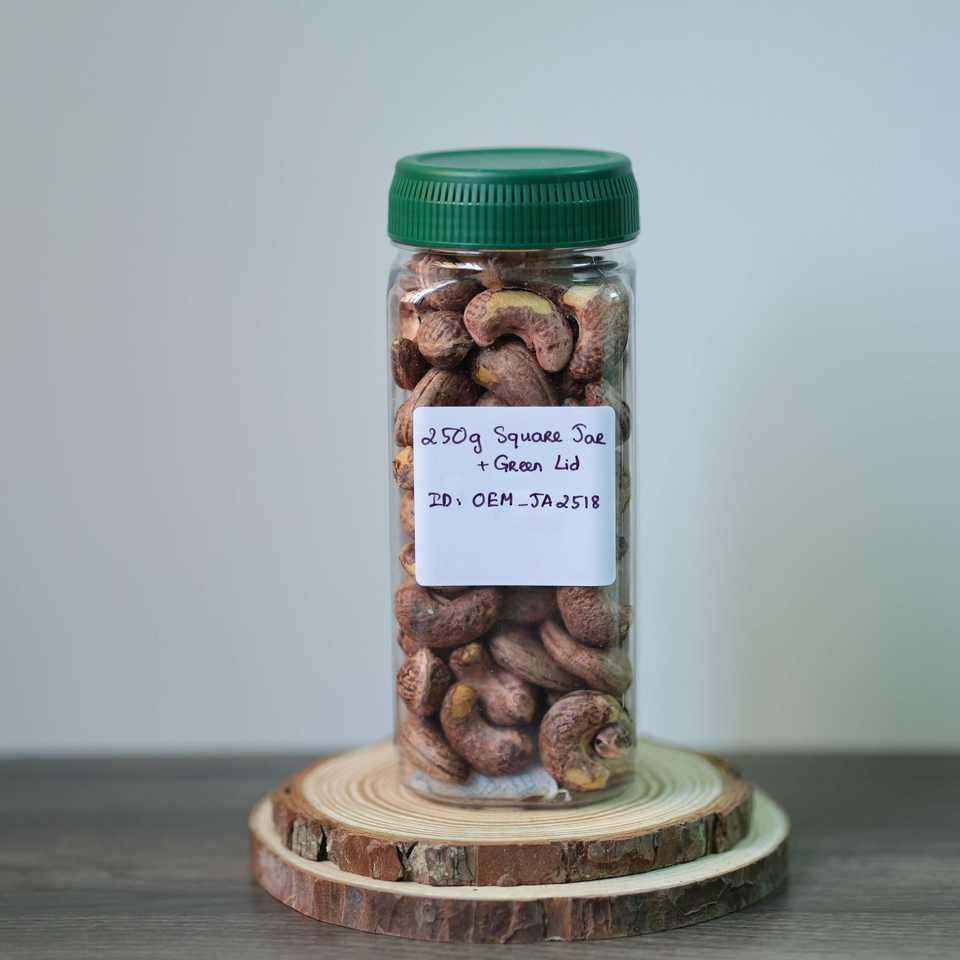 Wholesale Premium Organic Roasted Vietnam Cashew Nuts in 250g Square Jar-OEM Available Customizable Grade & Factory Origin