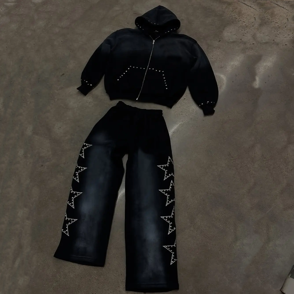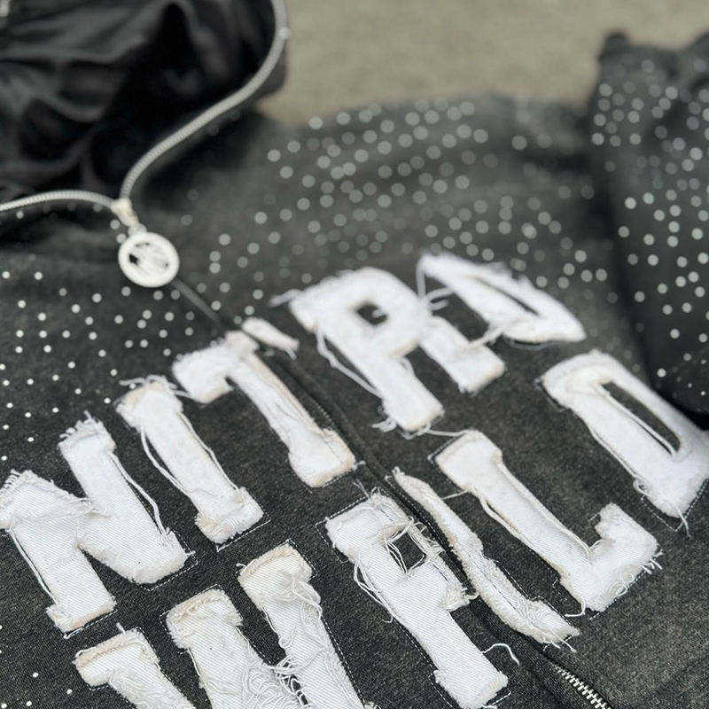 Vêtement de sport pour homme en coton vintage de qualité supérieure, broderie de strass personnalisée, lavage à l'acide, streetwear, vente en gros