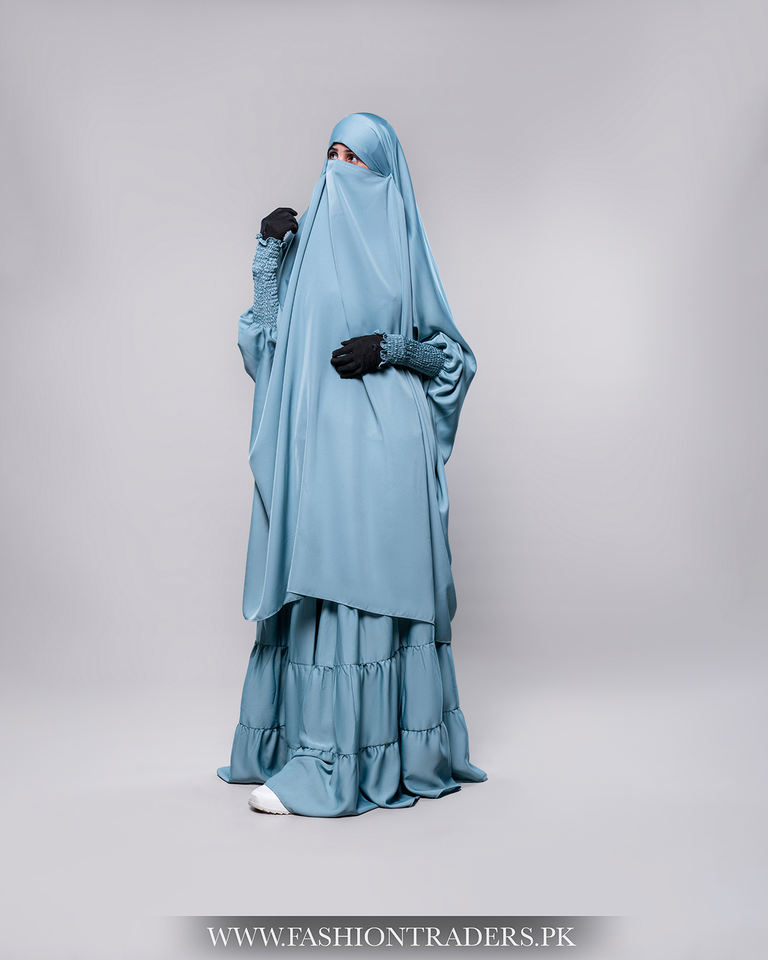 Product name:Two Piece Scrunch Sleeves Jilbab with Trio Ruffle Skirt