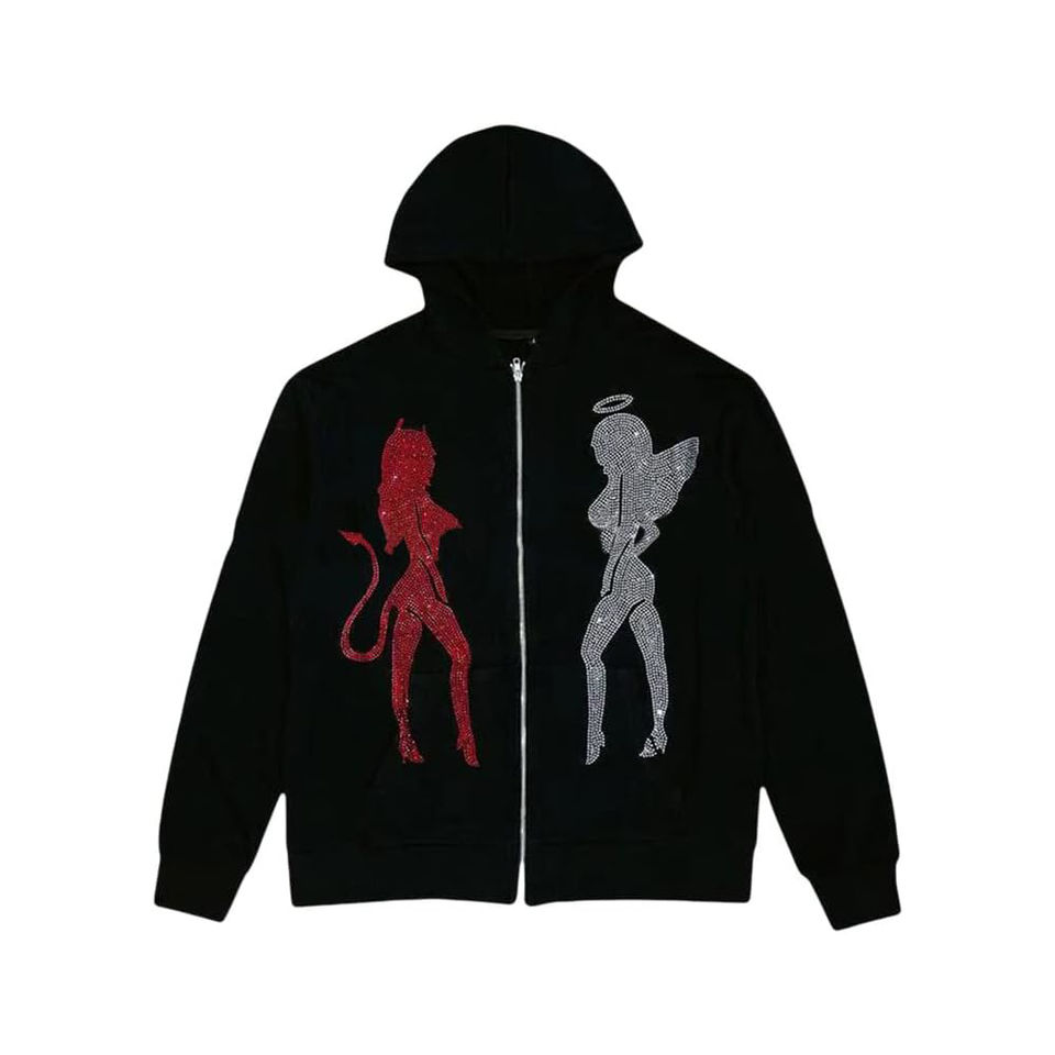 Nom du produit:Full Zip up avec logo strass Hoodie