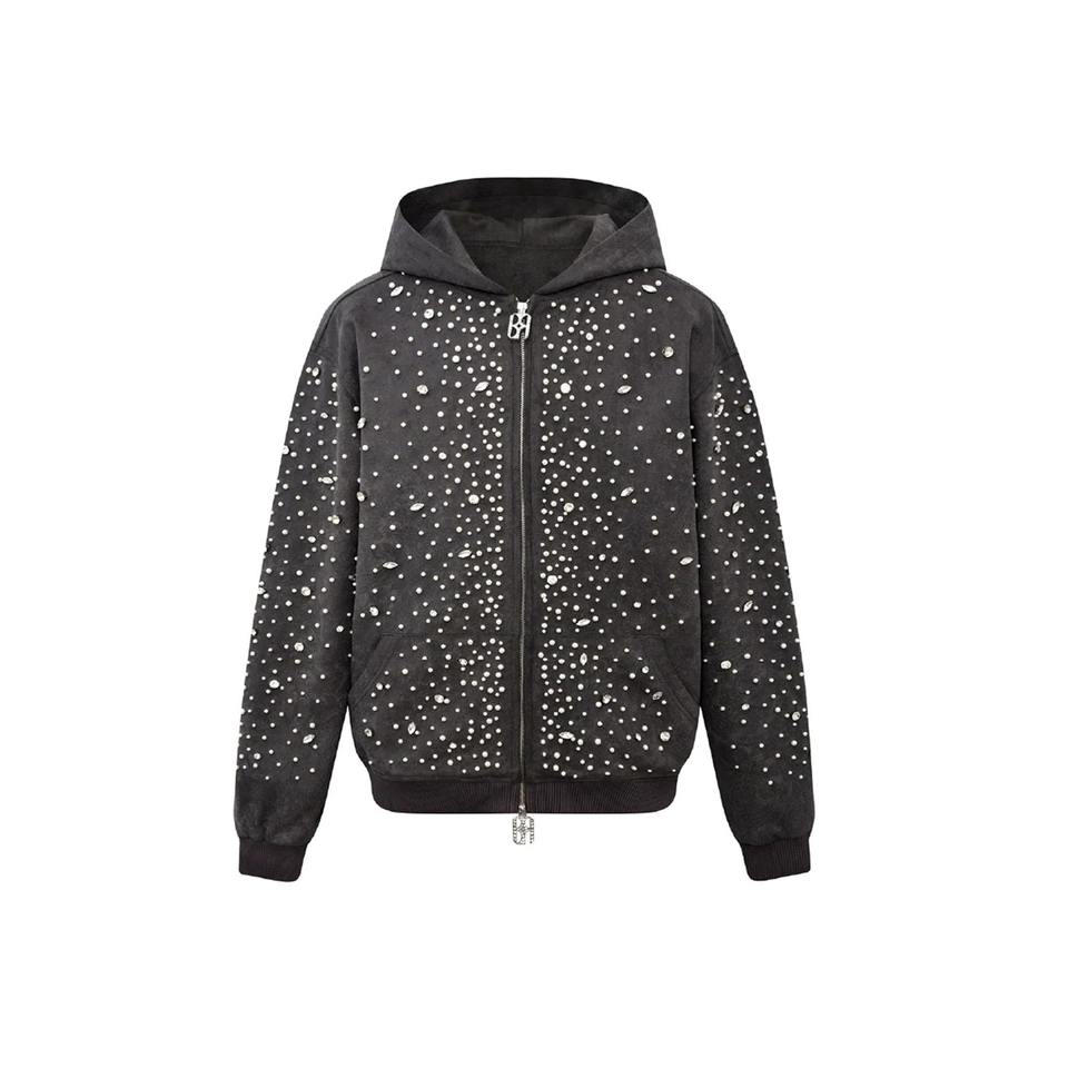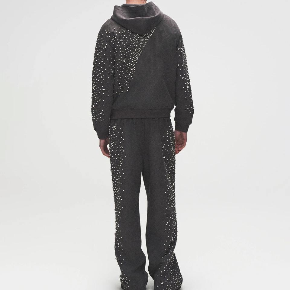 Wholesale Premium Quality Lightweight Men Winter Hooded Printed Rhinestone Tracksuits Jogging Wear