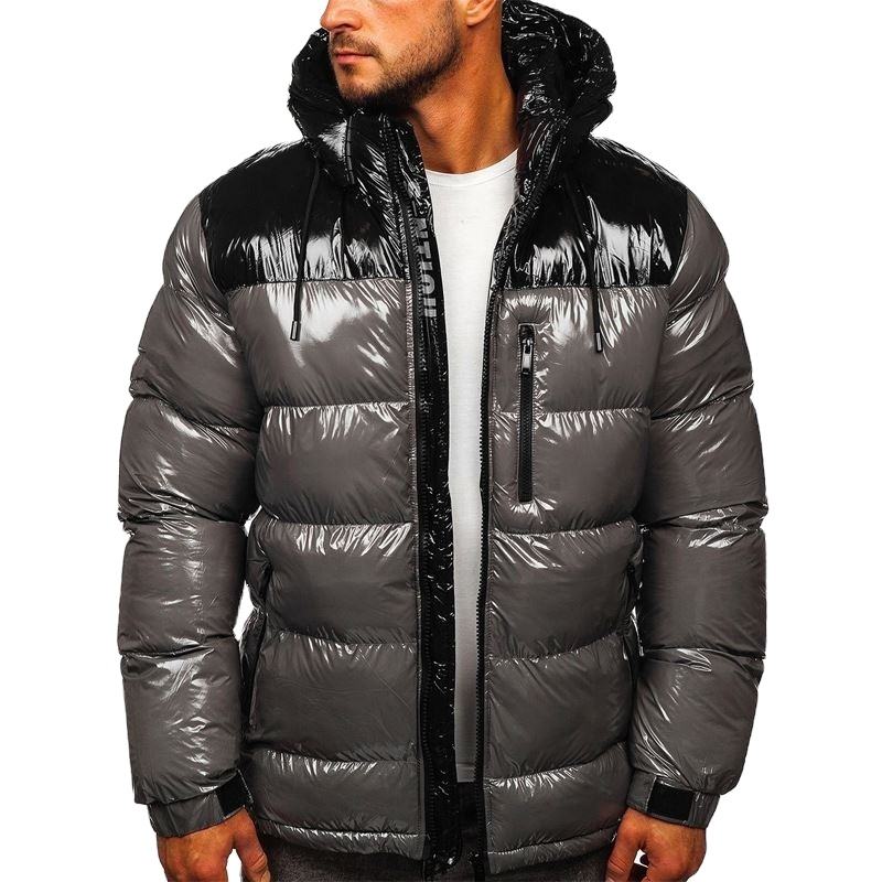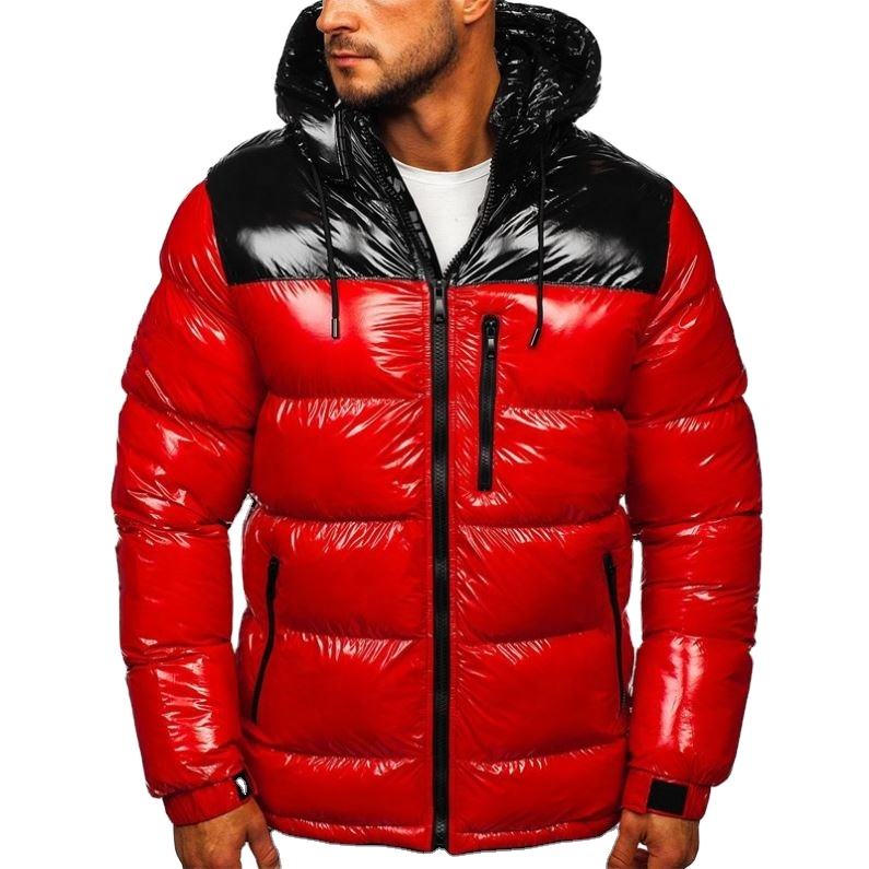 Wholesale Premium Quality Winter Fashion Men's High Street Shiny Glossy Stand Collar Cotton Filled Canvas Front Logo Quick Dry