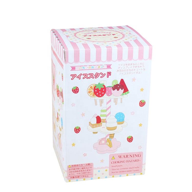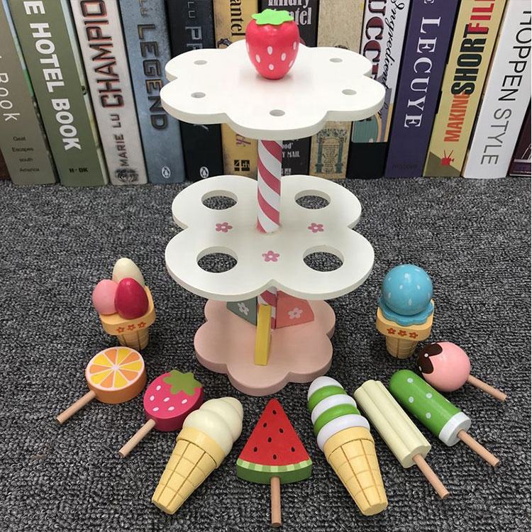 Vente en gros de jouets de camion de crème glacée miniature en bois pour faire semblant de jouer, chariots de crème glacée à la fraise, jouets de cuisine