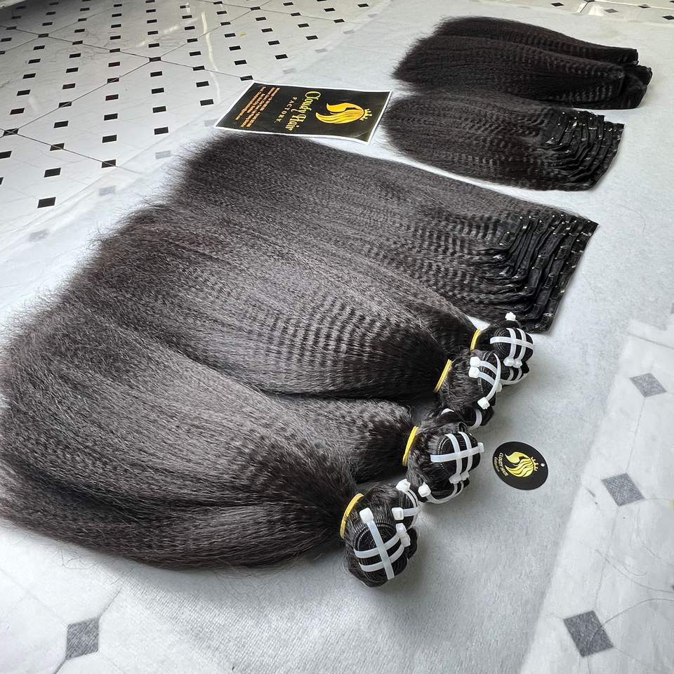 Prix de gros 100% vrais cheveux humains vierges crus Kinky Straight Double Drawn Bundles Extensions de cheveux humains