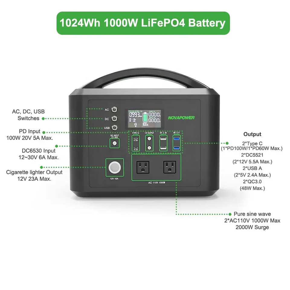 Prix de gros 1 kWh Banque d'alimentation au lithium compacte avec contrôleur MPPT Onduleur à onde sinusoïdale pure Sorties pour utilisation en extérieur et à domicile