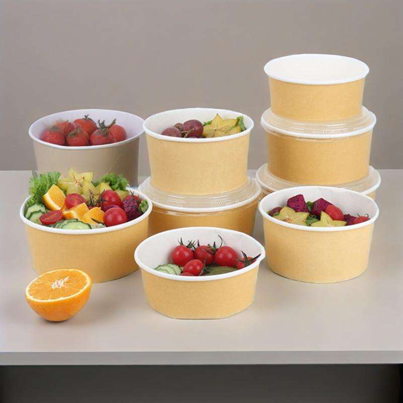 Prix de gros Bol en papier bicolore Emballage pour salade d'aliments à emporter Récipient rond pour emballage alimentaire avec couvercle