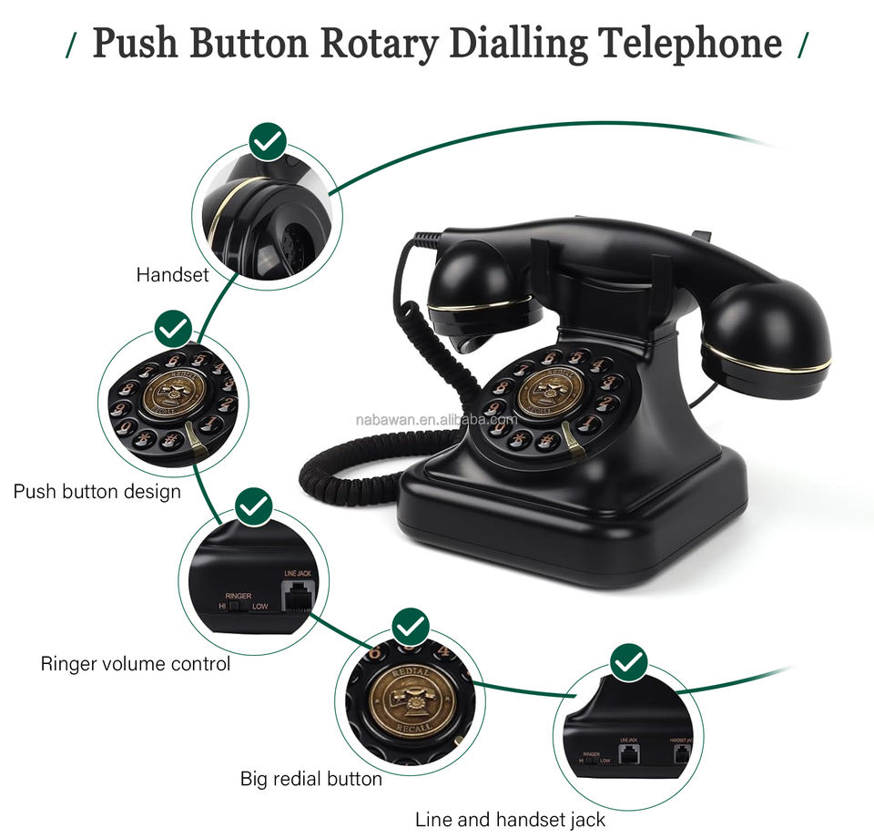 Téléphone fixe rétro filaire à prix de gros pour bureau, chambre d'hôtel, ligne fixe, Europe, États-Unis