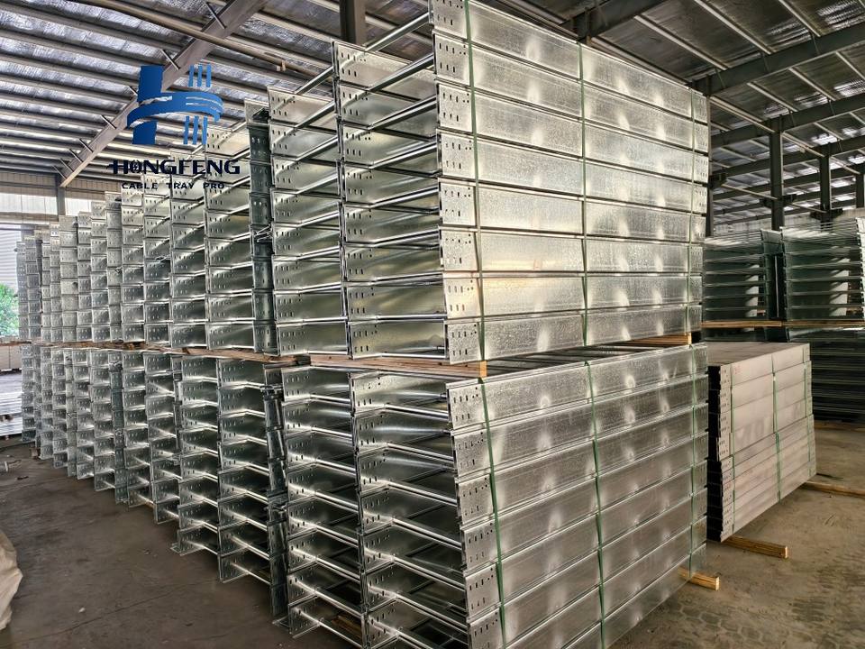 Chemin de câbles de type cheminée galvanisé à chaud, à longueur personnalisée, avec rails latéraux, prix de gros