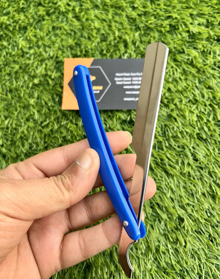 Prix de gros, logo personnalisé, rasoir turc en acier inoxydable, rasoir de barbier à lame simple, lames de sécurité professionnelles, plastique bleu