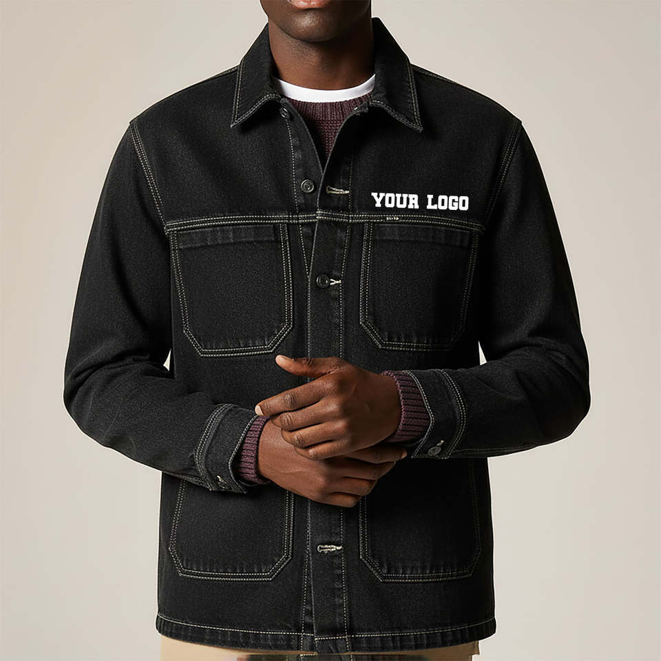 Veste en jean sur mesure à prix de gros, design élégant, séchage rapide, coupe-vent, couleur noire unie, broderie, veste en jean vintage