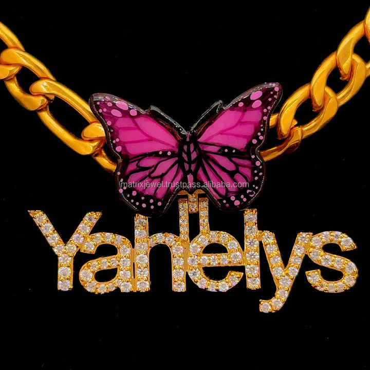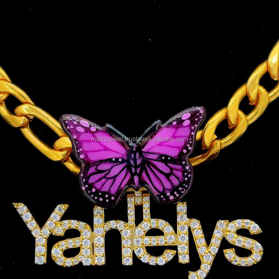 Prix de gros personnalisé plusieurs couleurs papillon caution en argent 925 plaqué or 14 carats dernier pendentif collier pour femmes bijoux