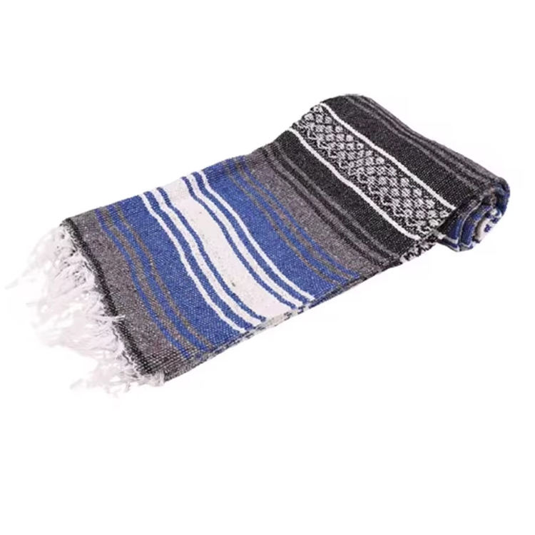 Prix de gros personnalisé grande taille bleu foncé rayé laine couverture Falsa motif tissé