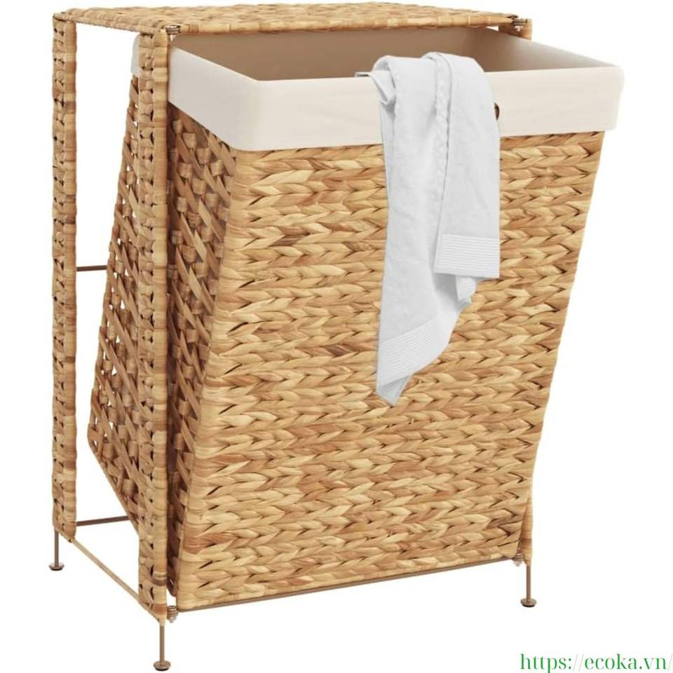 Panier à linge rectangulaire en jacinthe d'eau naturelle fait main avec couvercle, tissé à la main au Vietnam, prix de gros