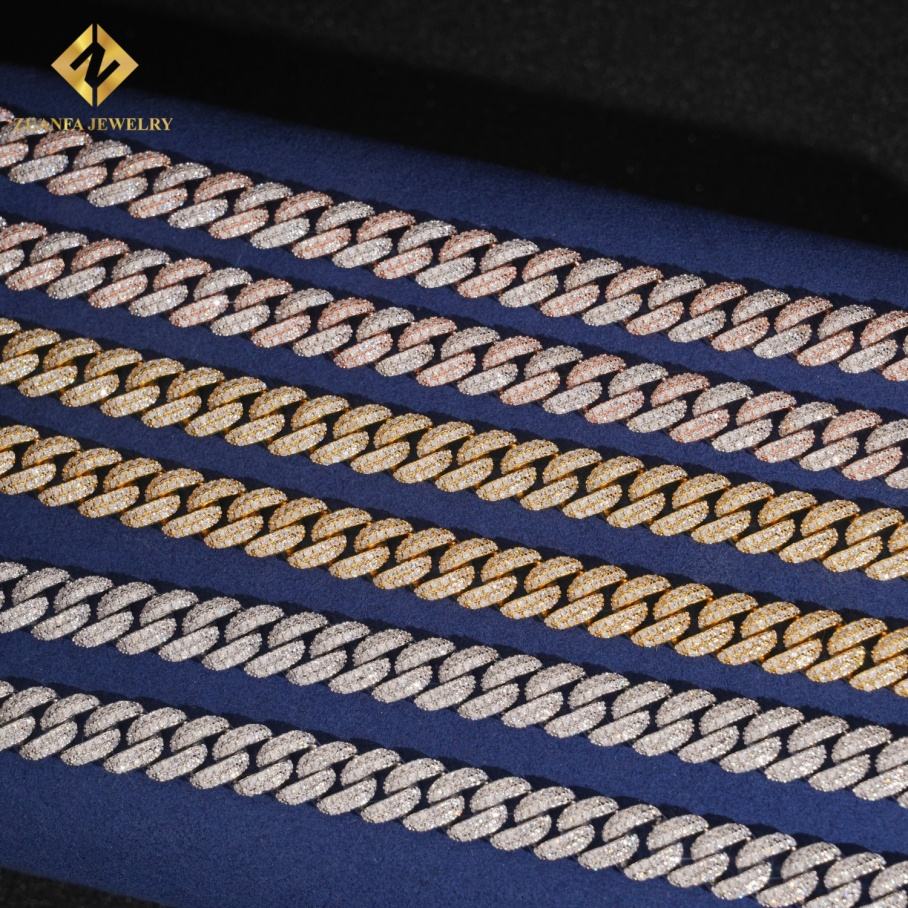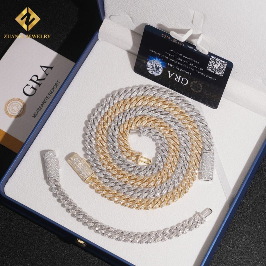 Wholesale Price Hip Hop Men Cuban Necklace Two Tone 925 Silver 10mm Iced Out Moissanite Cuban Link Chain Rock Jewelry