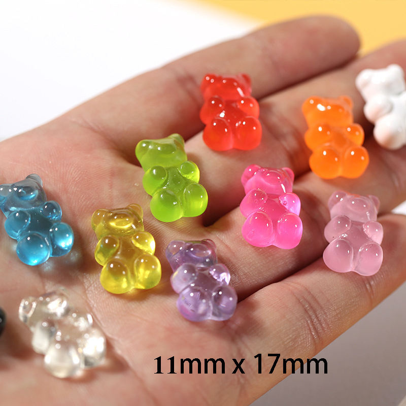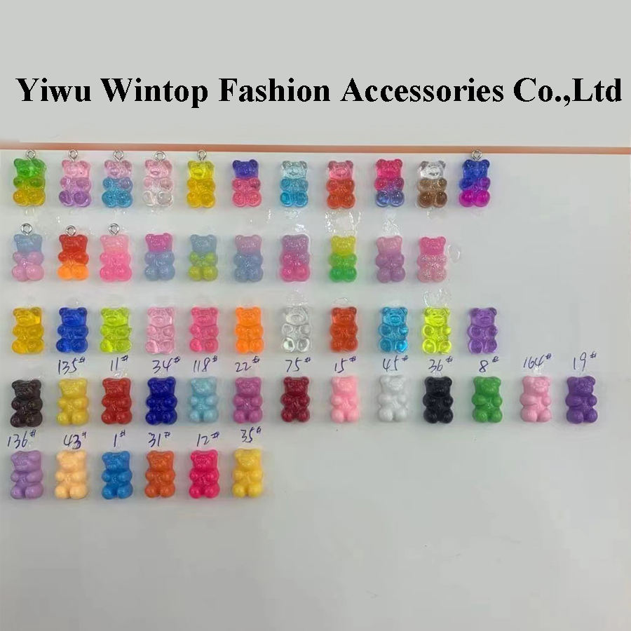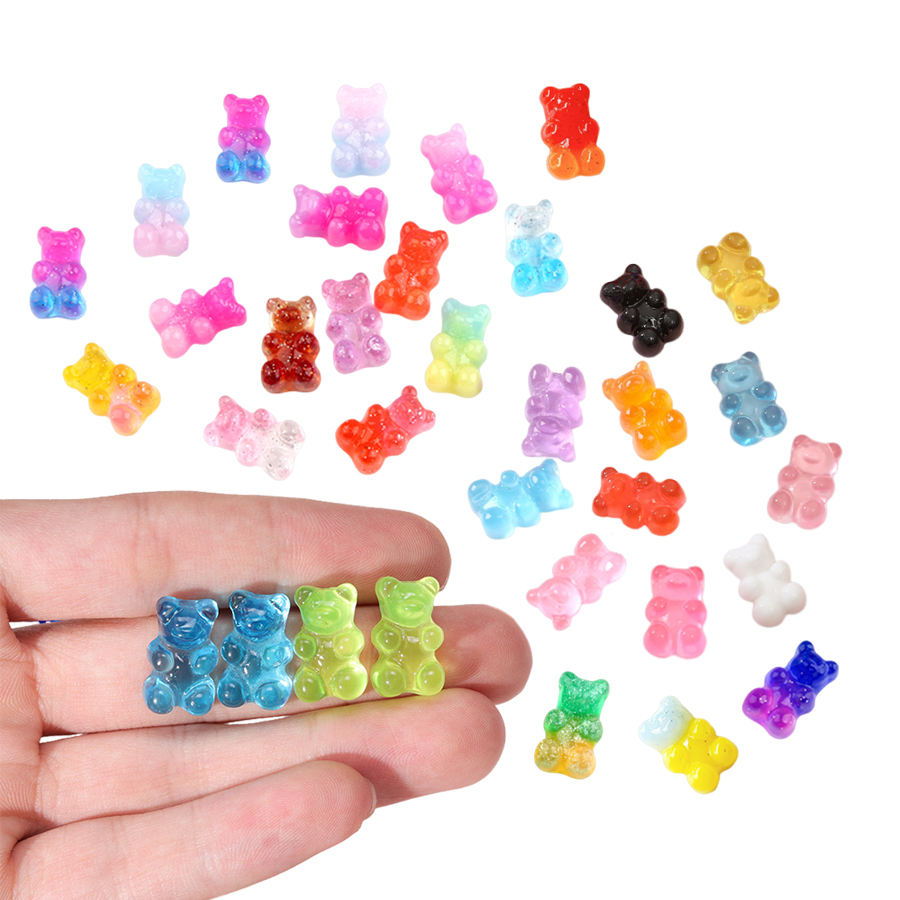 Prix de gros, Vente chaude : Cabochon en résine rigide à dos plat, motif oursons gélifiés, dégradé de couleurs, pour la fabrication de bijoux