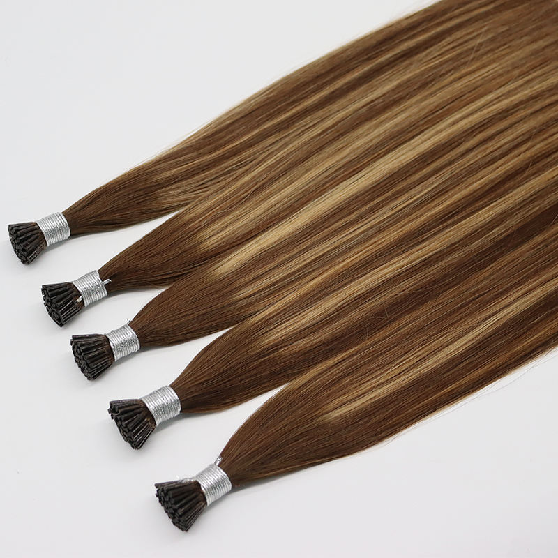 Prix de gros liaison de kératine Remy brésilien naturel 1B couleur plat Balayage I pointe Extensions de cheveux humains vierge U pointe longue pouce