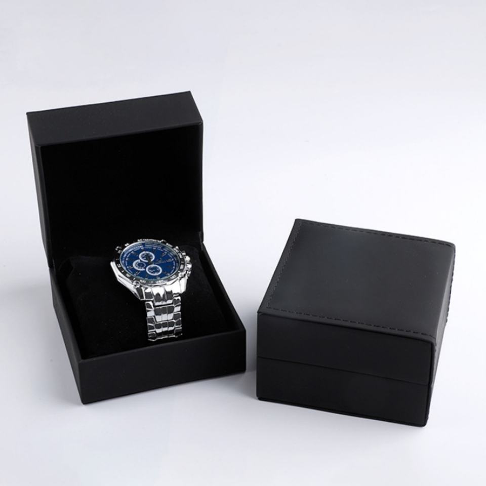 Prix de gros, faible MOQ, boîte d'emballage personnalisée pour montres et bijoux en cuir PU noir haut de gamme, anti-poussière, support OEM ODM