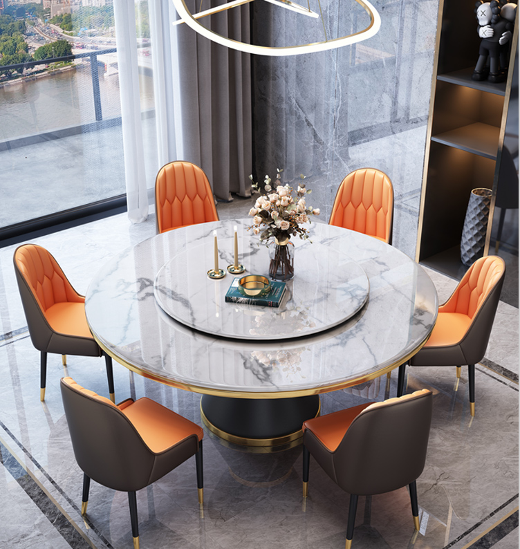 Durable and Sturdy Construction: Our modern dining room metal base two marble top rotating dining table set is built with a sturdy ashwood frame, ensuring stability and durability for years to come. Its solid wood and rattan construction provides a solid base for the rotating center, making it perfect for heavy use in various settings.