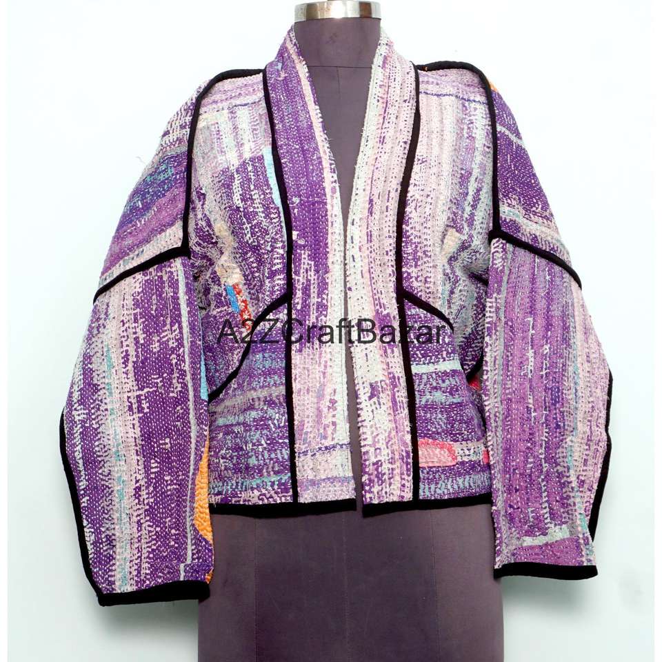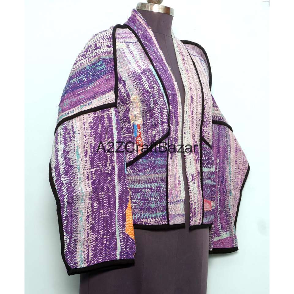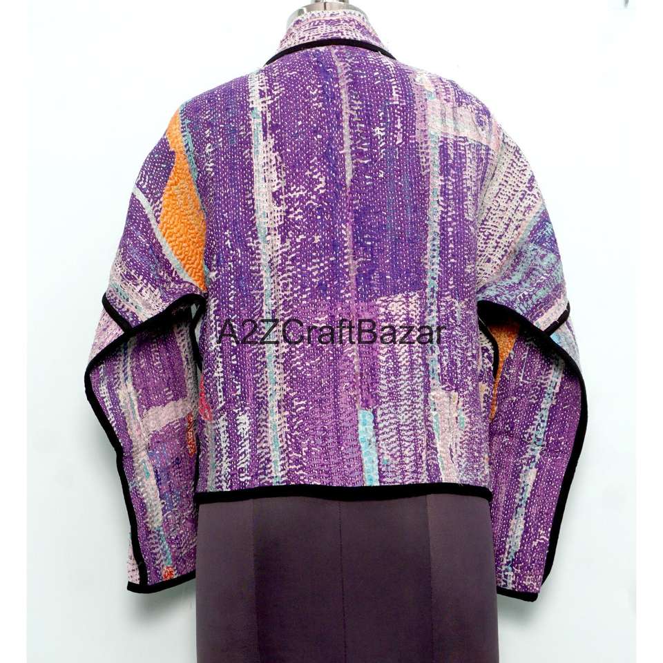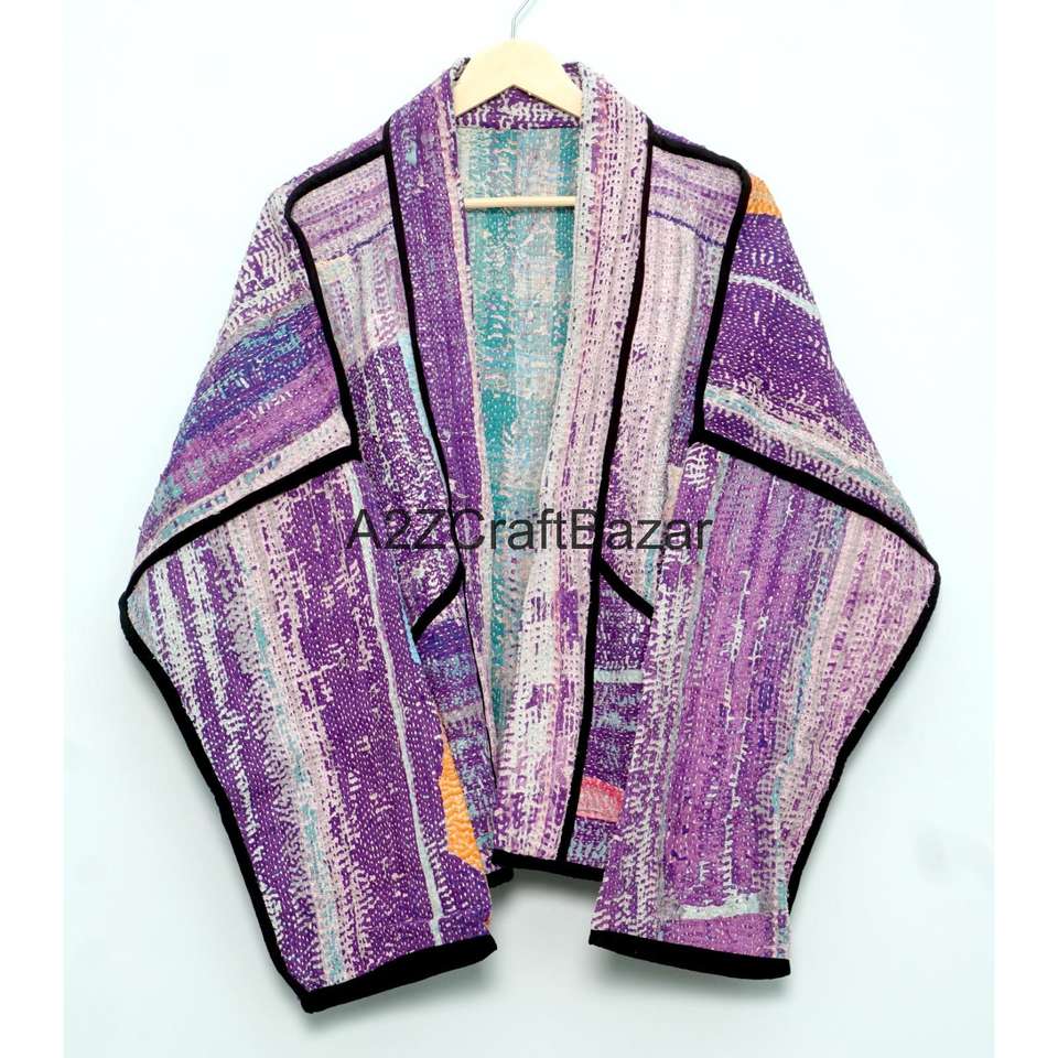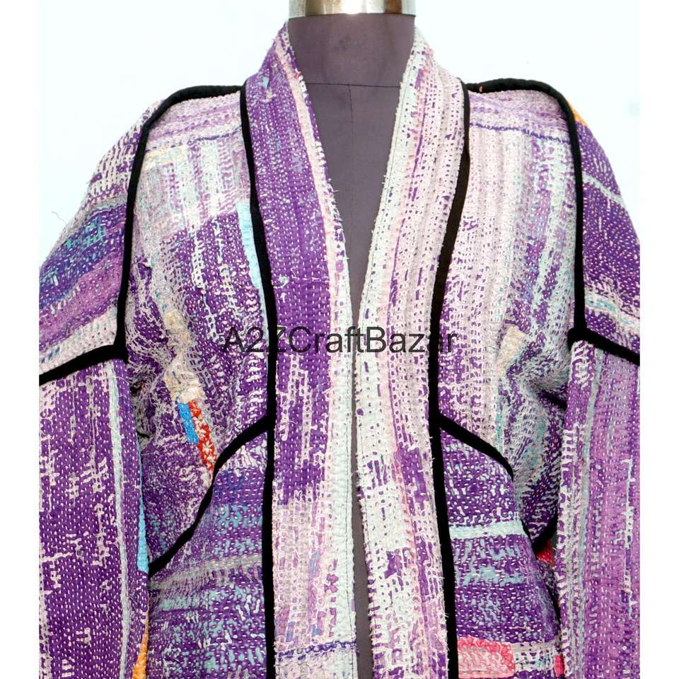 Veste Kantha Vintage Imprimée Artisanale 100% Coton Pur Multicolore de Designer, Qualité Supérieure, Respirante, Boutonnée, Hiver, Prix de Gros