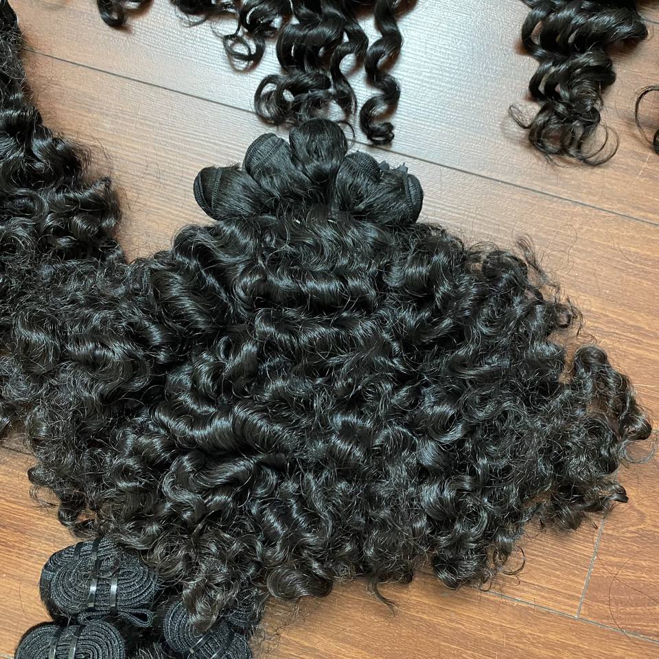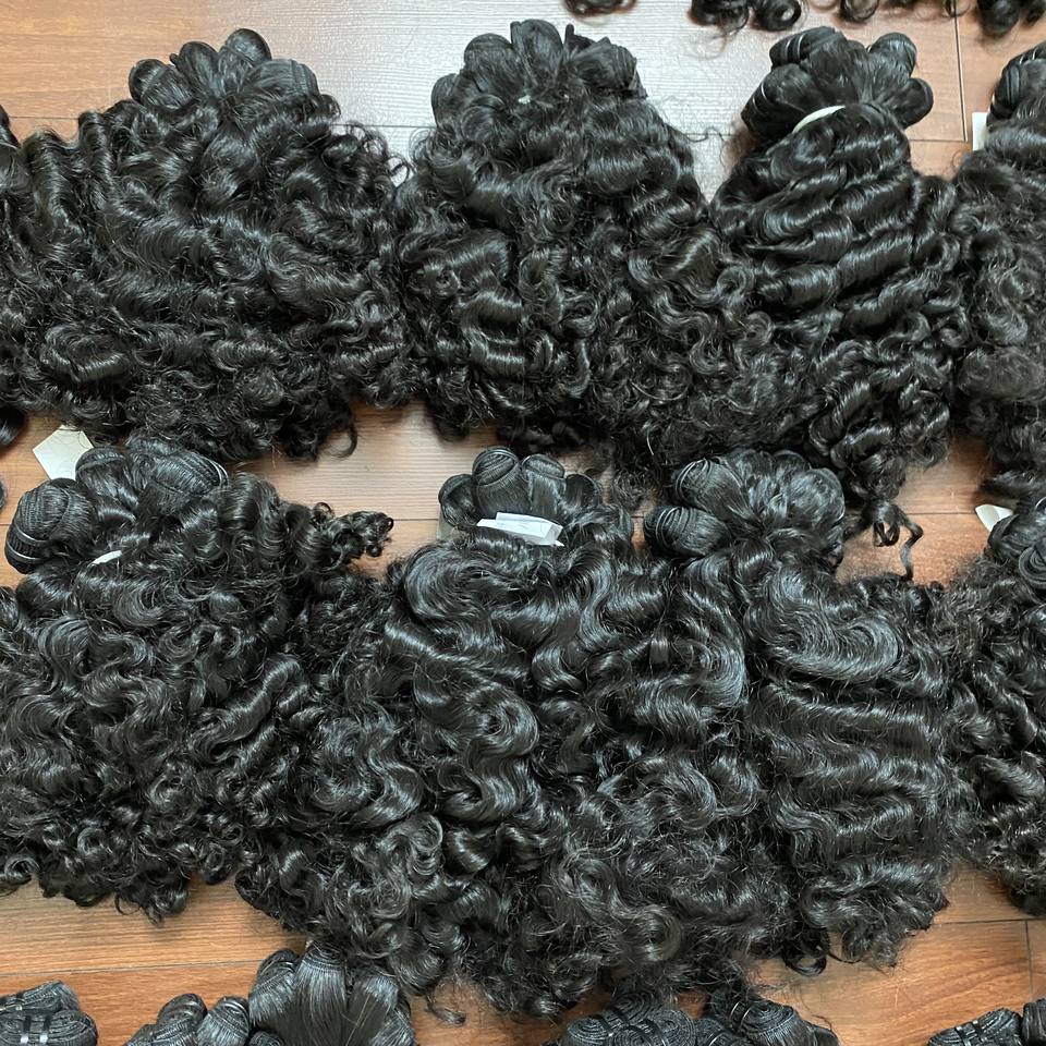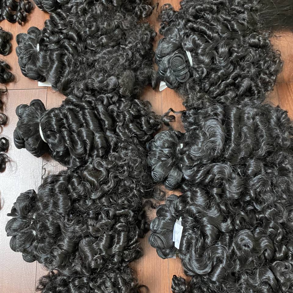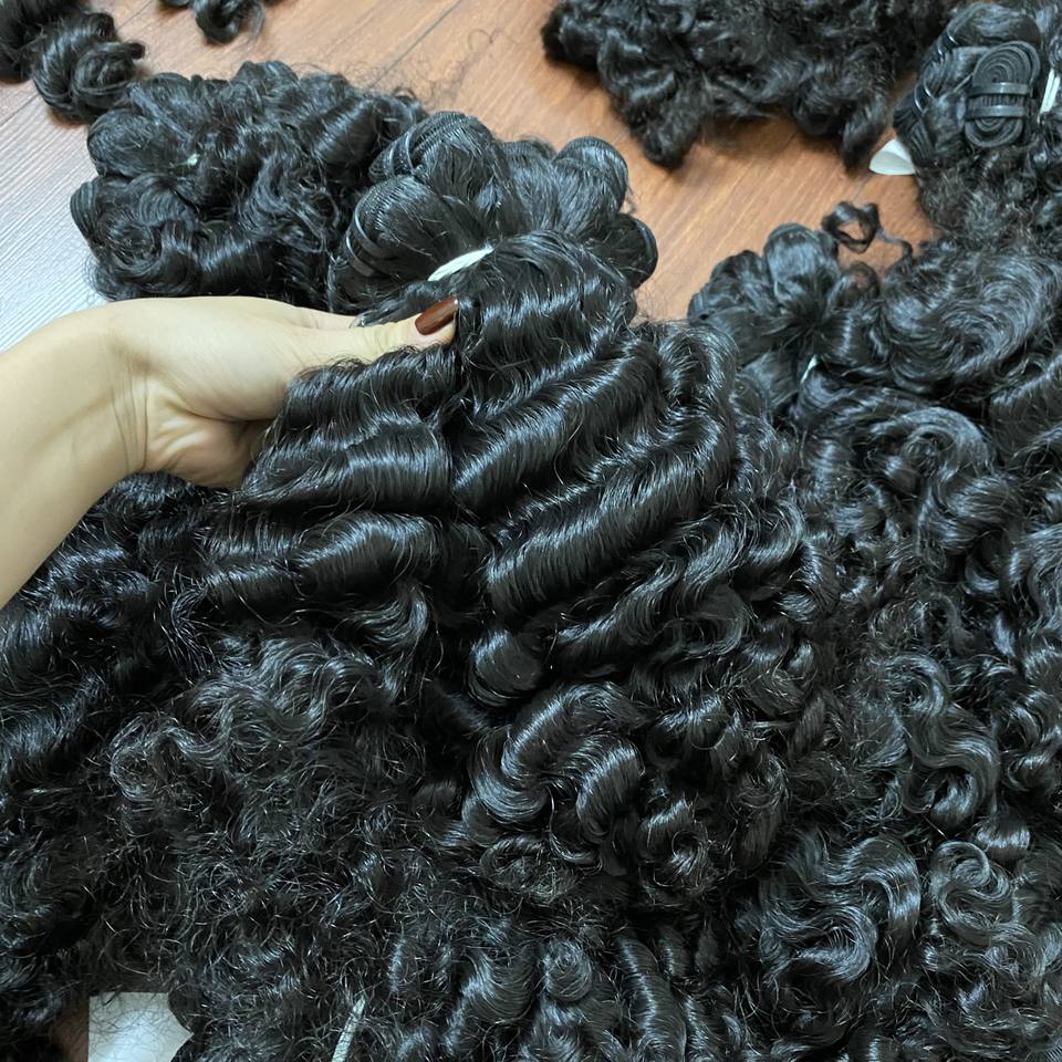 Prix de gros, cheveux bouclés à la vapeur noire, double dessin, cheveux humains péruviens, cheveux bouclés à la vapeur noirs